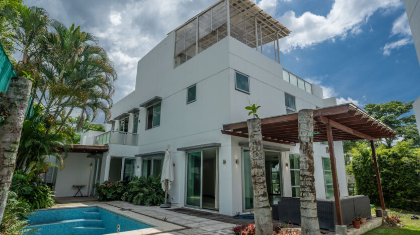 La casa cuenta con un lote de 541m2 y 480m2 de Construcción, ubicada en un condominio de casas separadas le permitirá vivir con mayor privacidad, cuenta con hermosa y amplia sala comedor, cocina con muebles empotrados y de finos acabados con elegantes salpicaderas y extractor de grasa de campana, con isla y cocina empotrada de vitrocerámica, cuarto de servicio con su propio baño, terraza, piscina amplia y patio con jardín, espacio de parqueo para 2 vehículos o más.