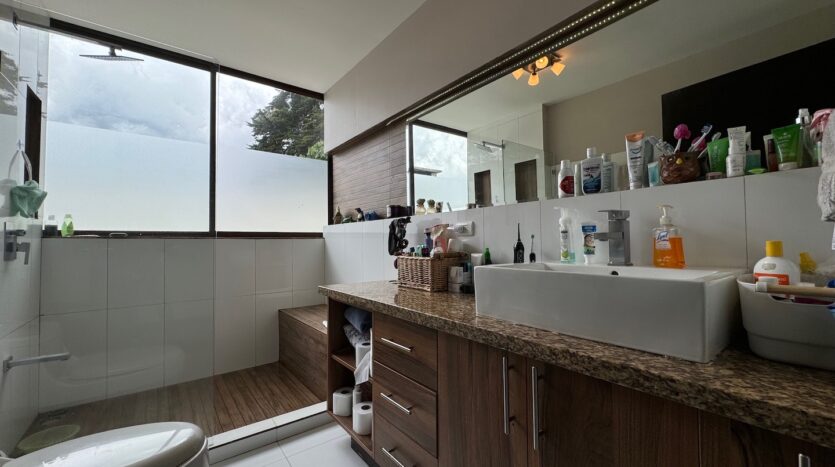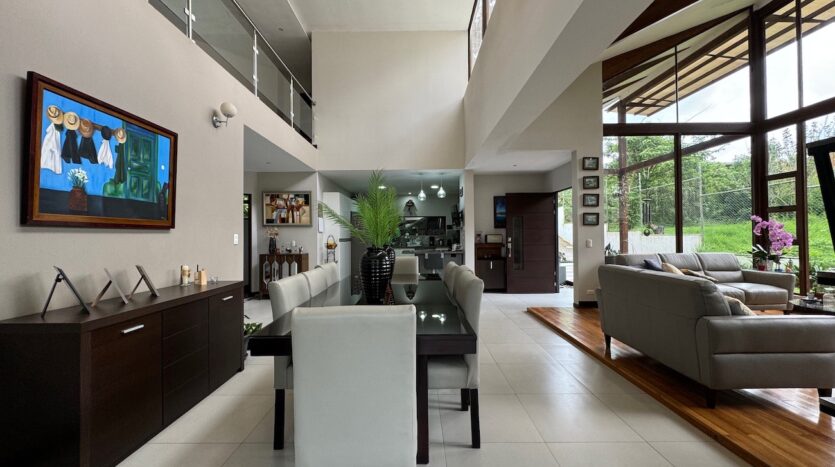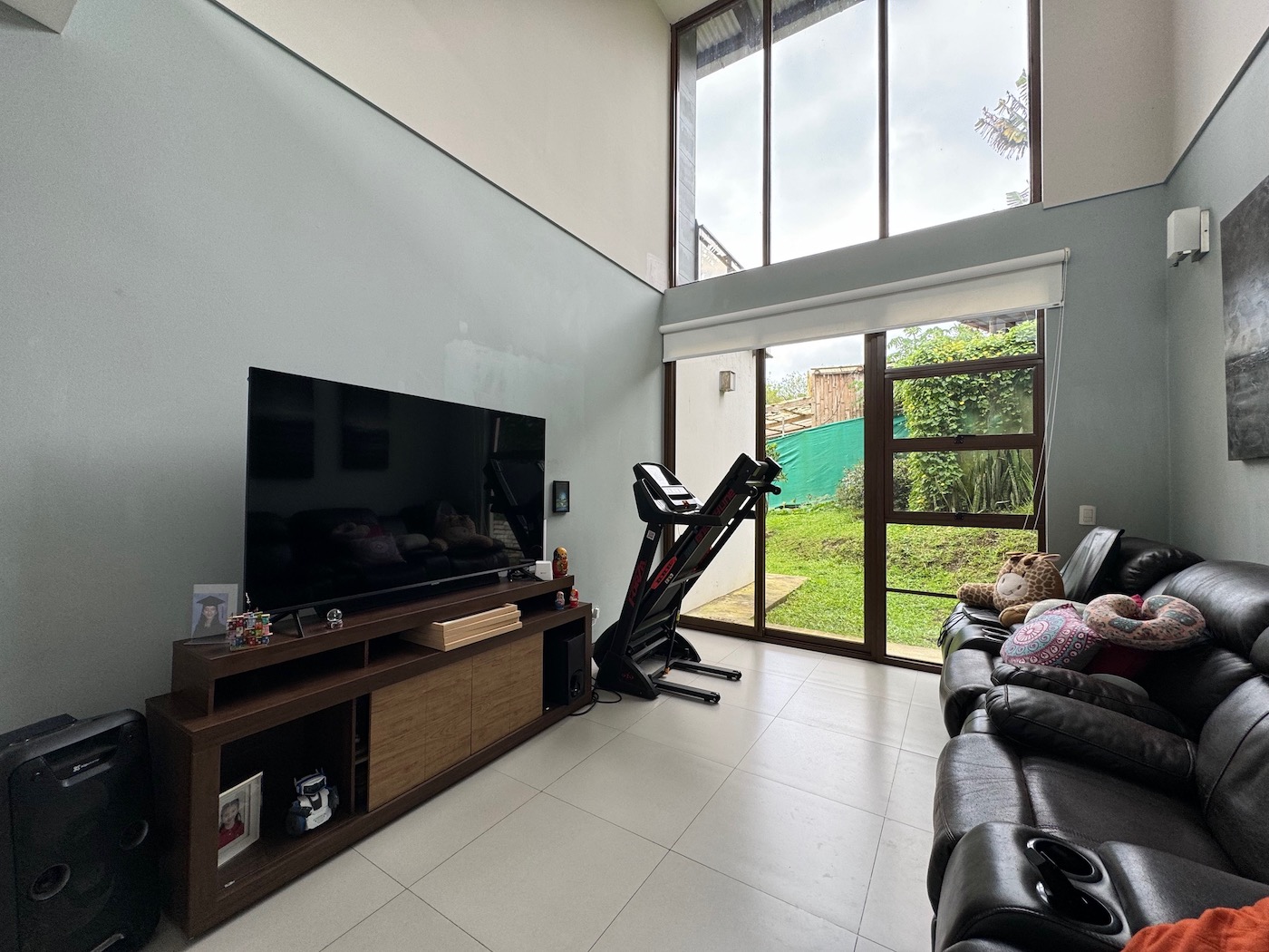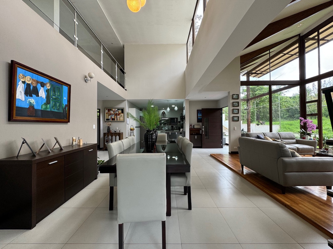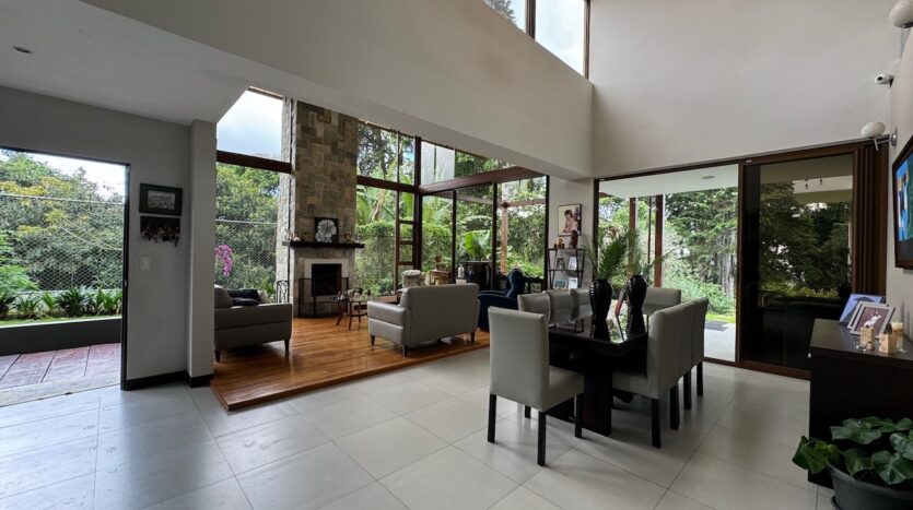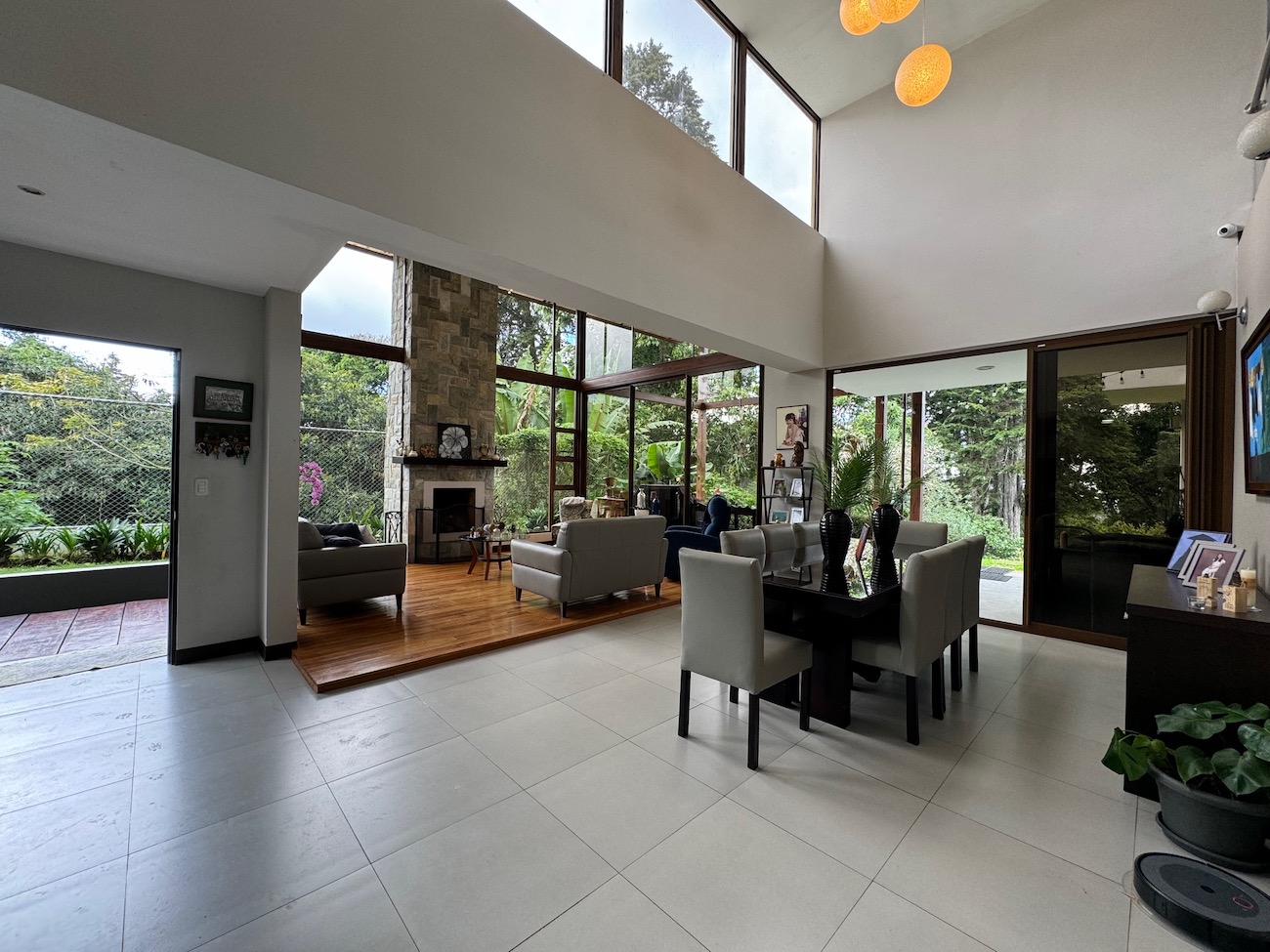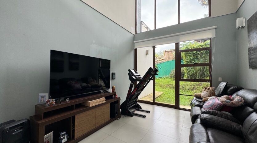 - Confortable sala comedor con doble altura y sala de TV en primera planta con doble altura.