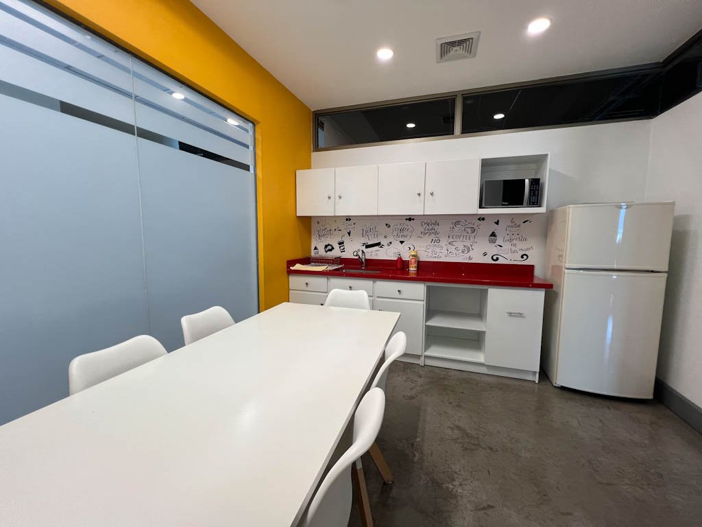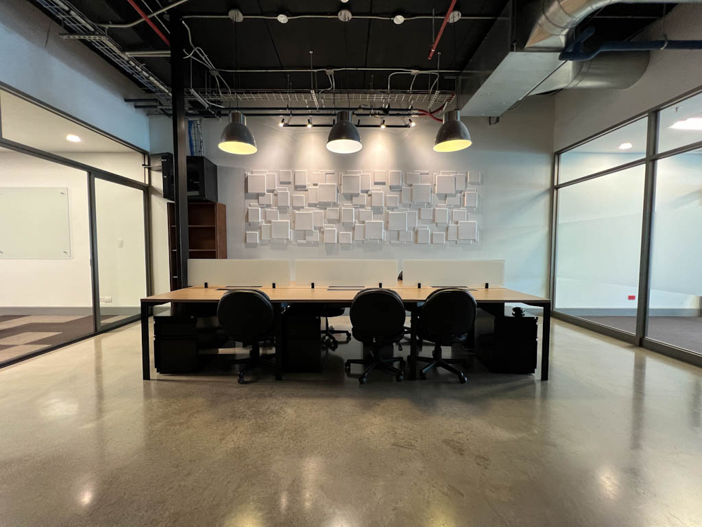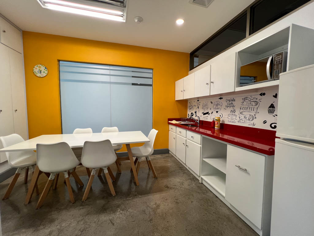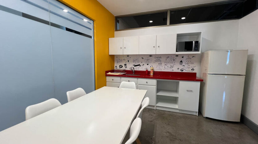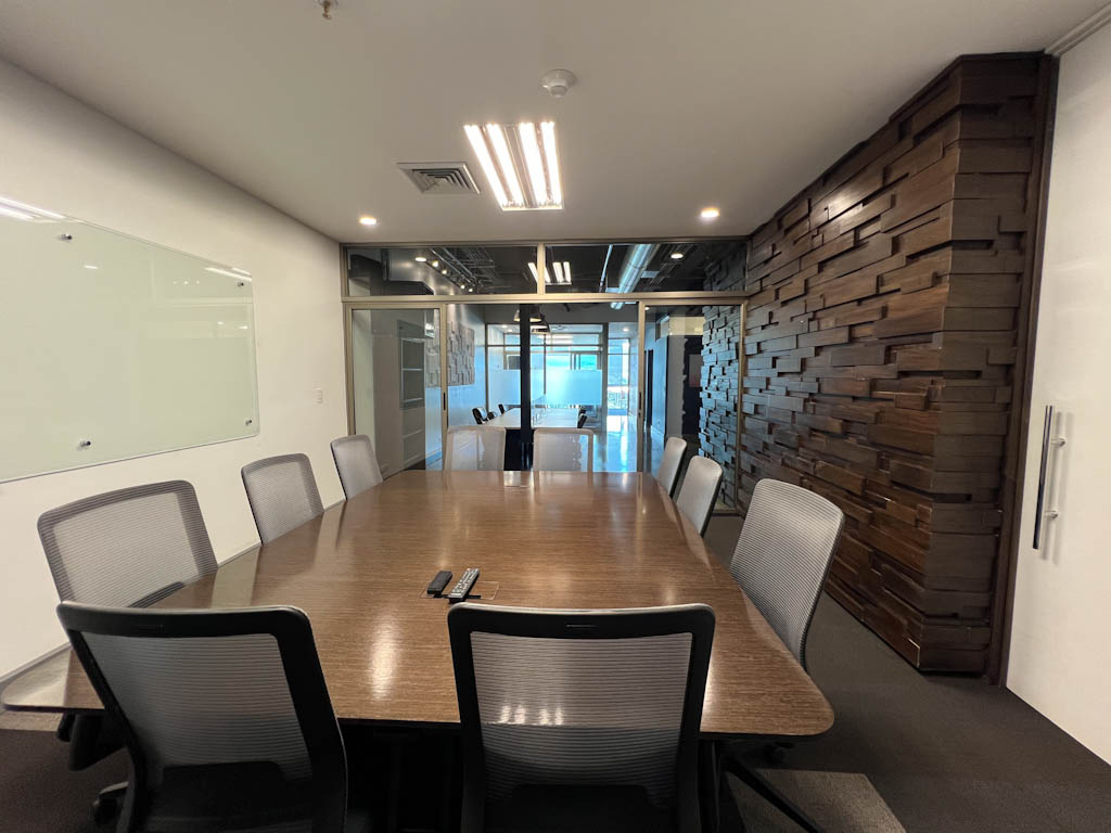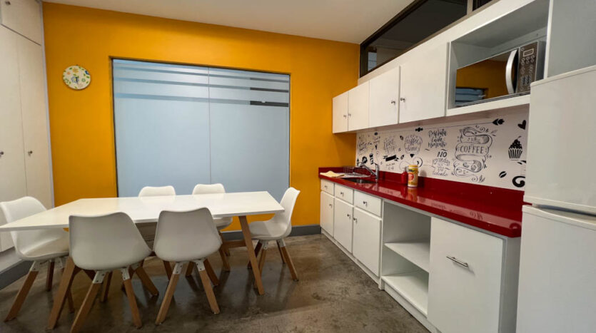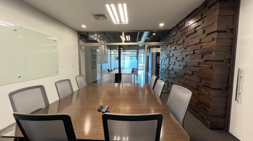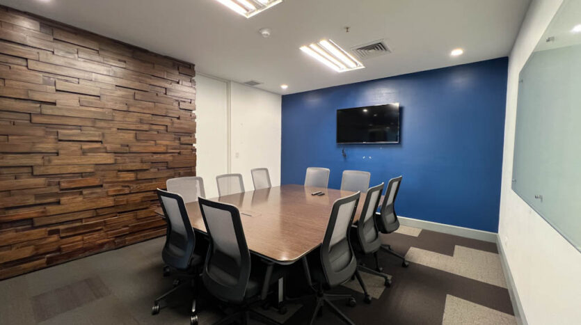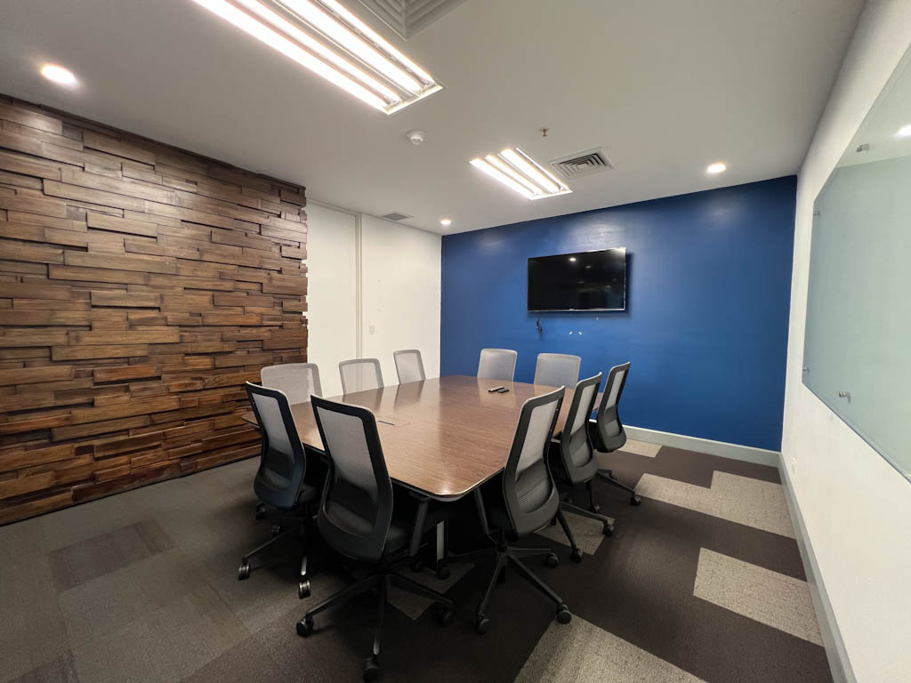 - Sala de reuniones para 10 personas con pantalla y pizarra (4m x 5m aproximadamente)