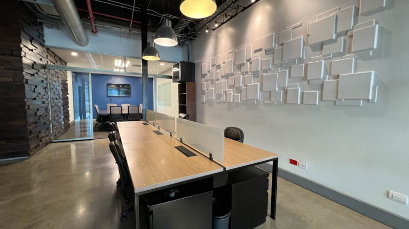 Oportunidad de alquiler de oficina amueblada con un diseño moderno y excelente distribución y acabados. Cuenta con espacios de trabajo, salas de reuniones equipados con escritorios, sillones, sillas y parqueo propio.