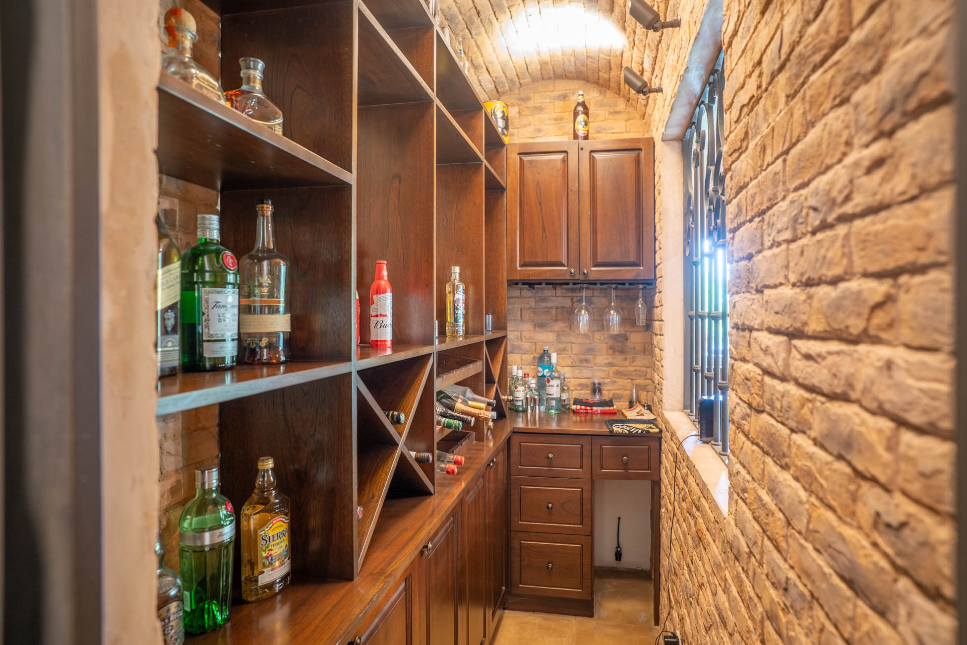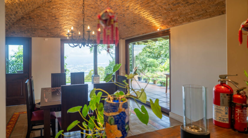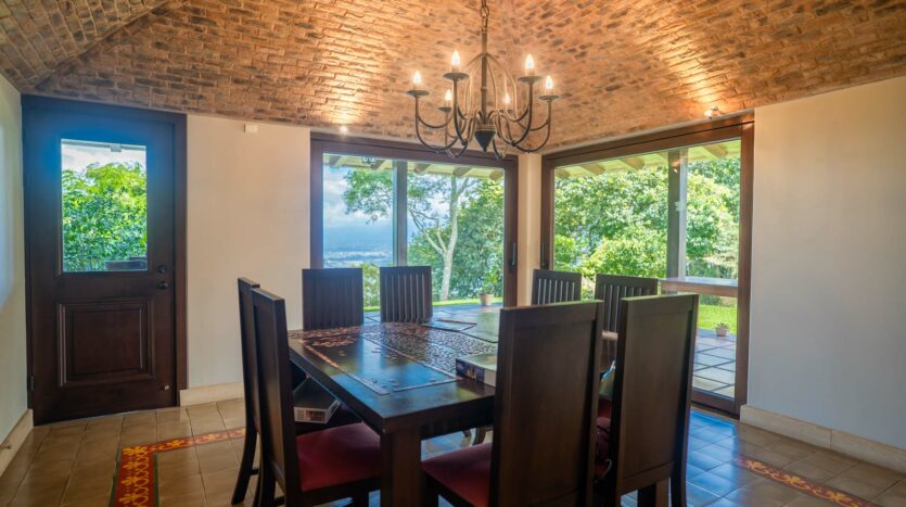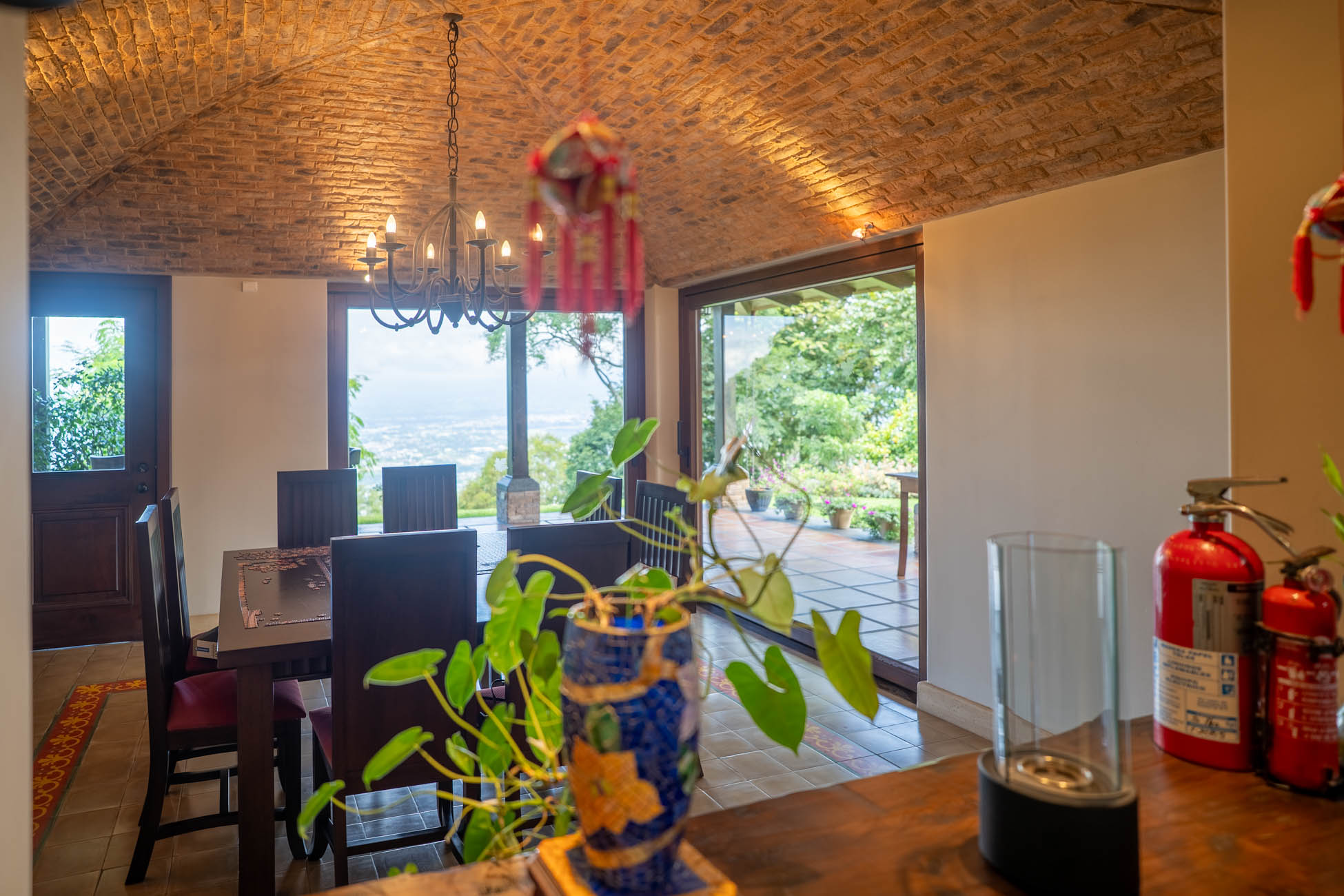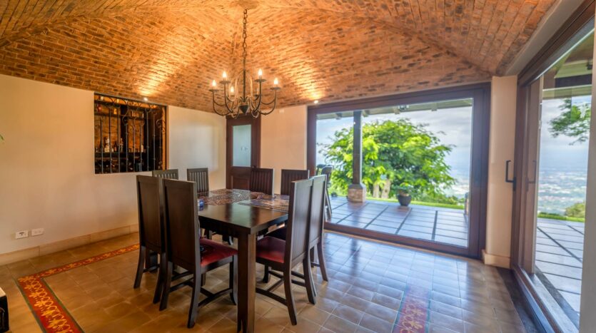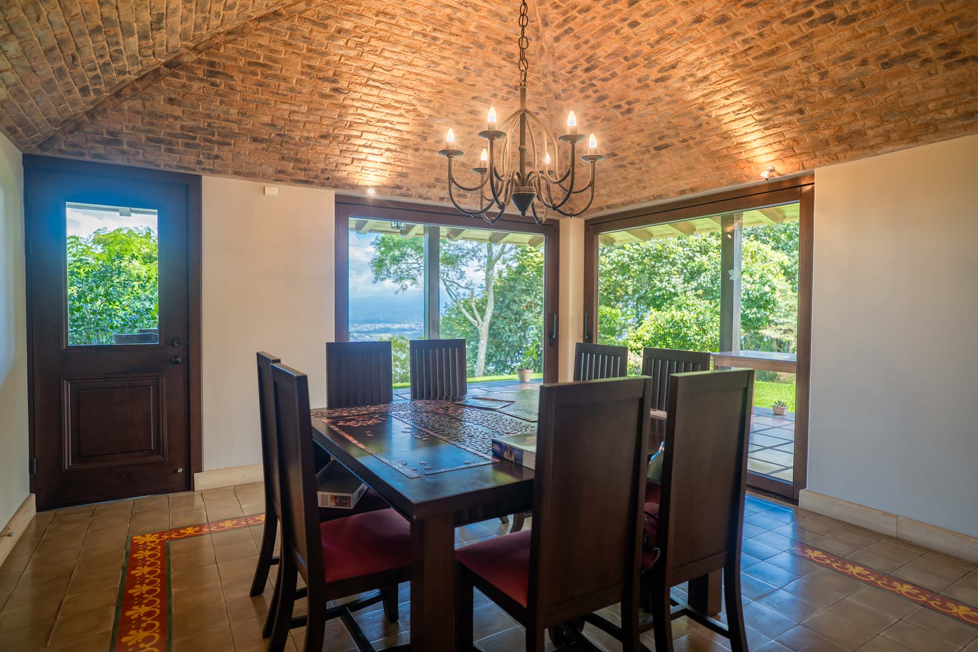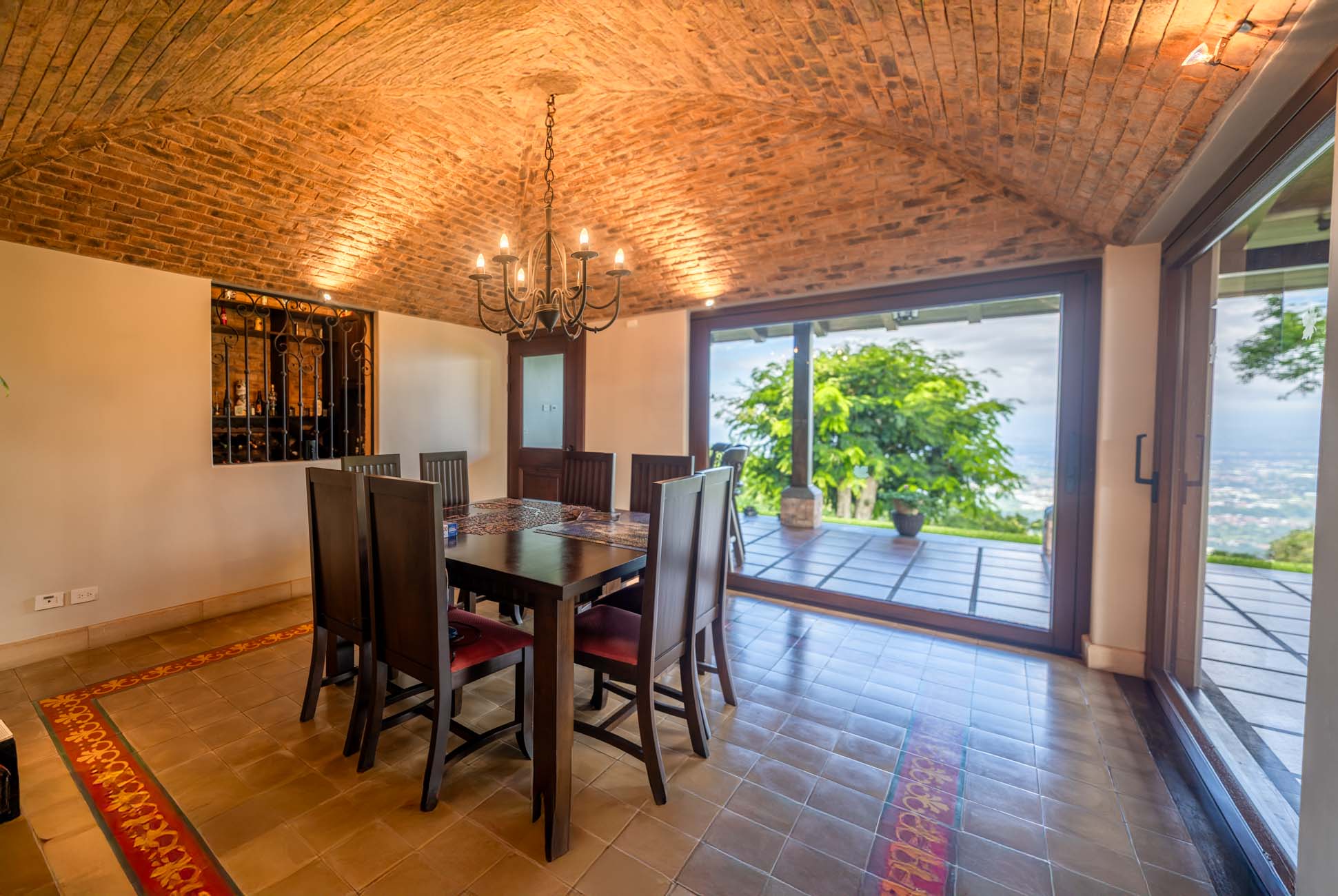 Comedor con finos acabados en madera y techo abovedado en ladrillo importado.