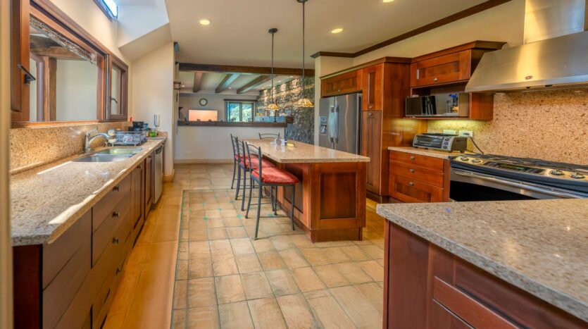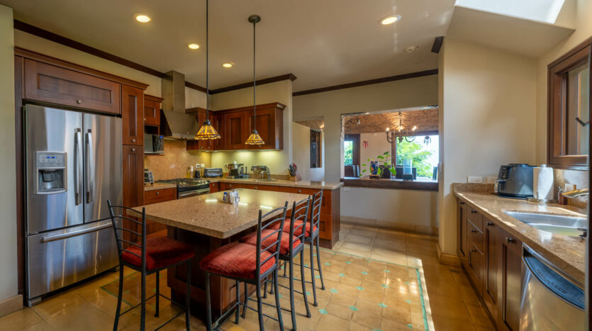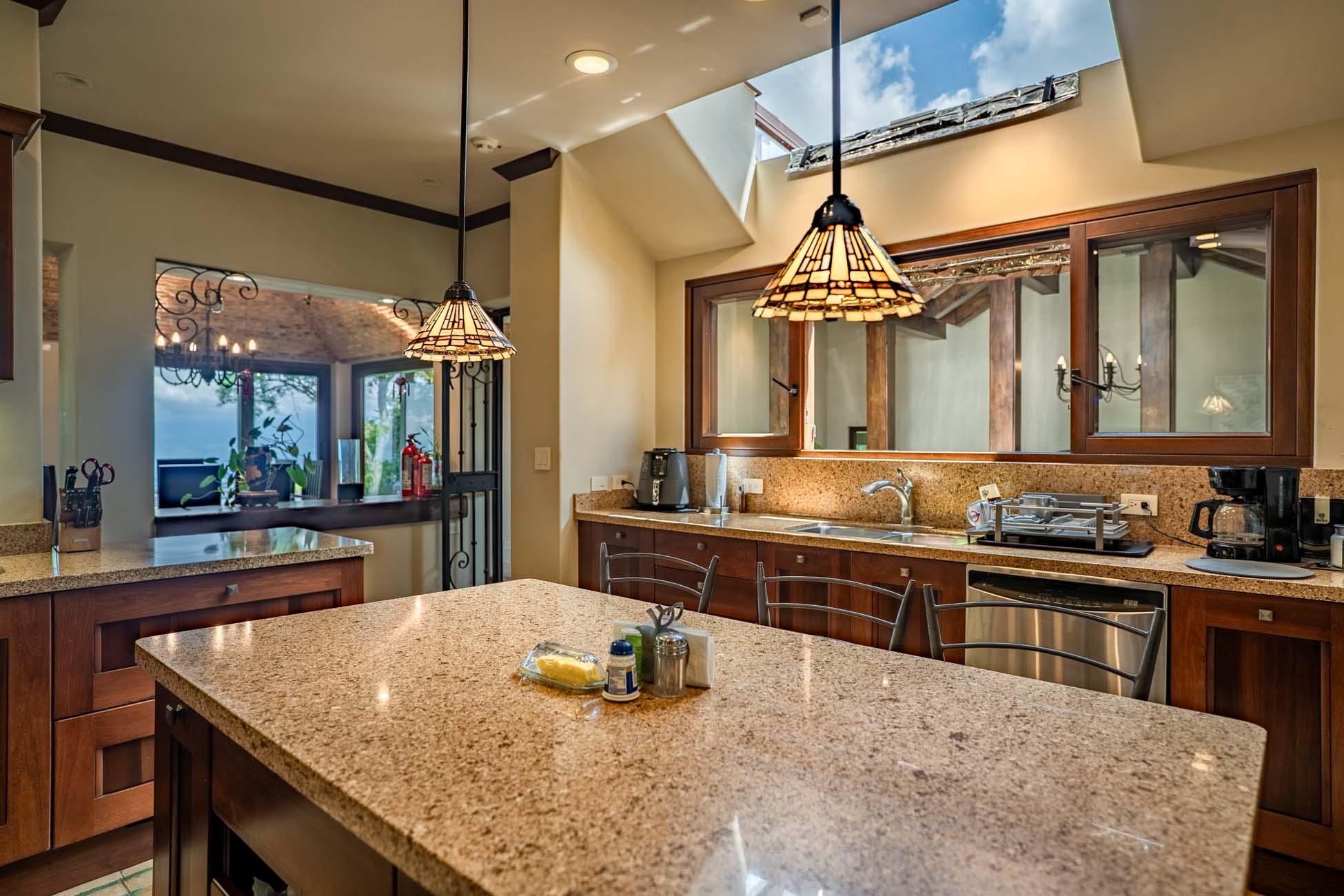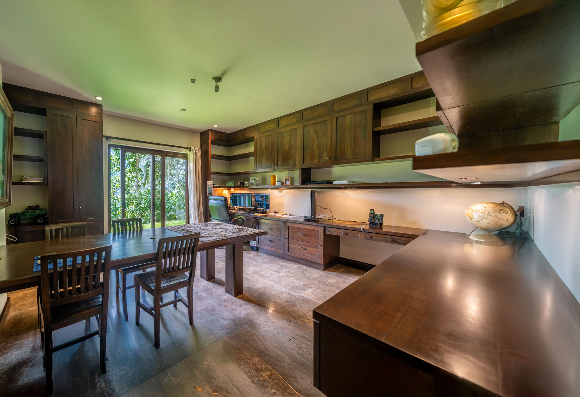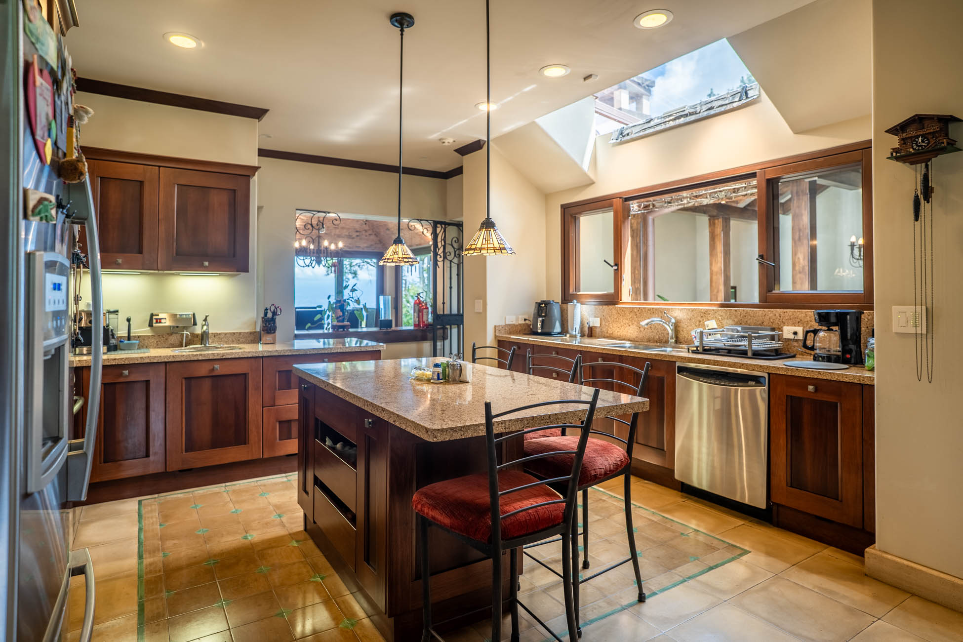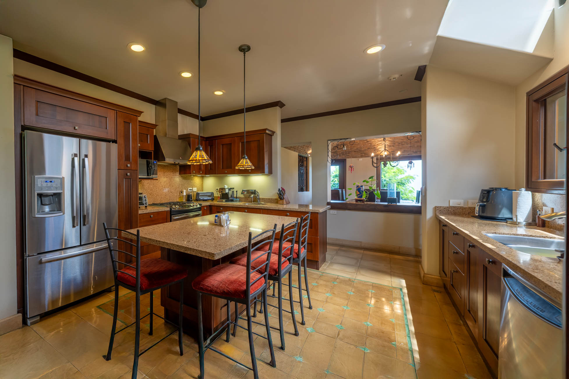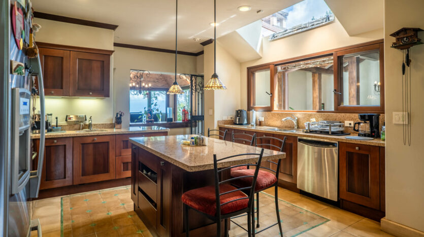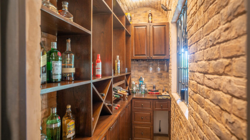 Comedor con finos acabados en madera y techo abovedado en ladrillo importado.