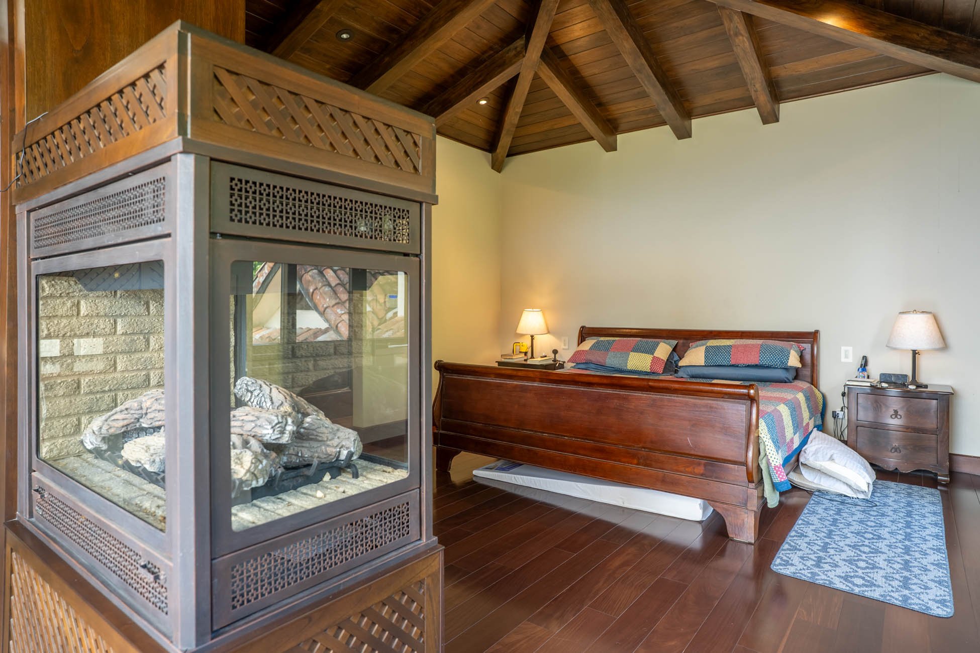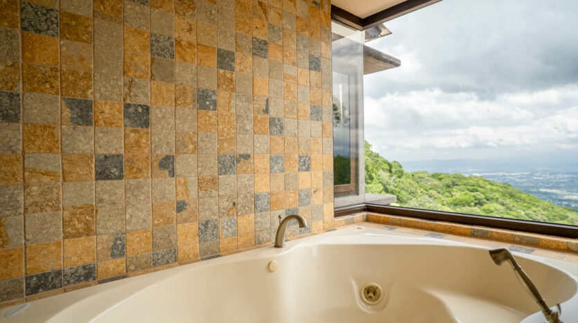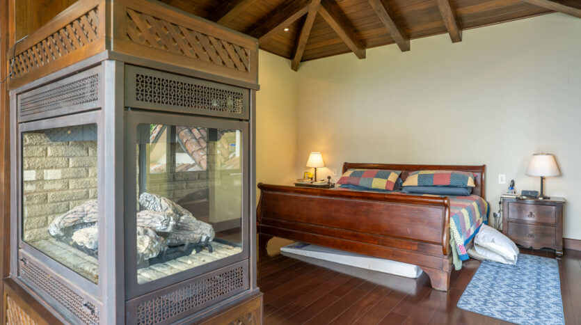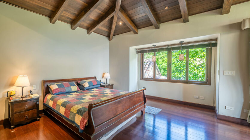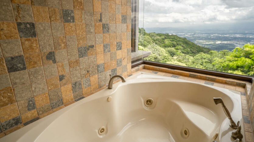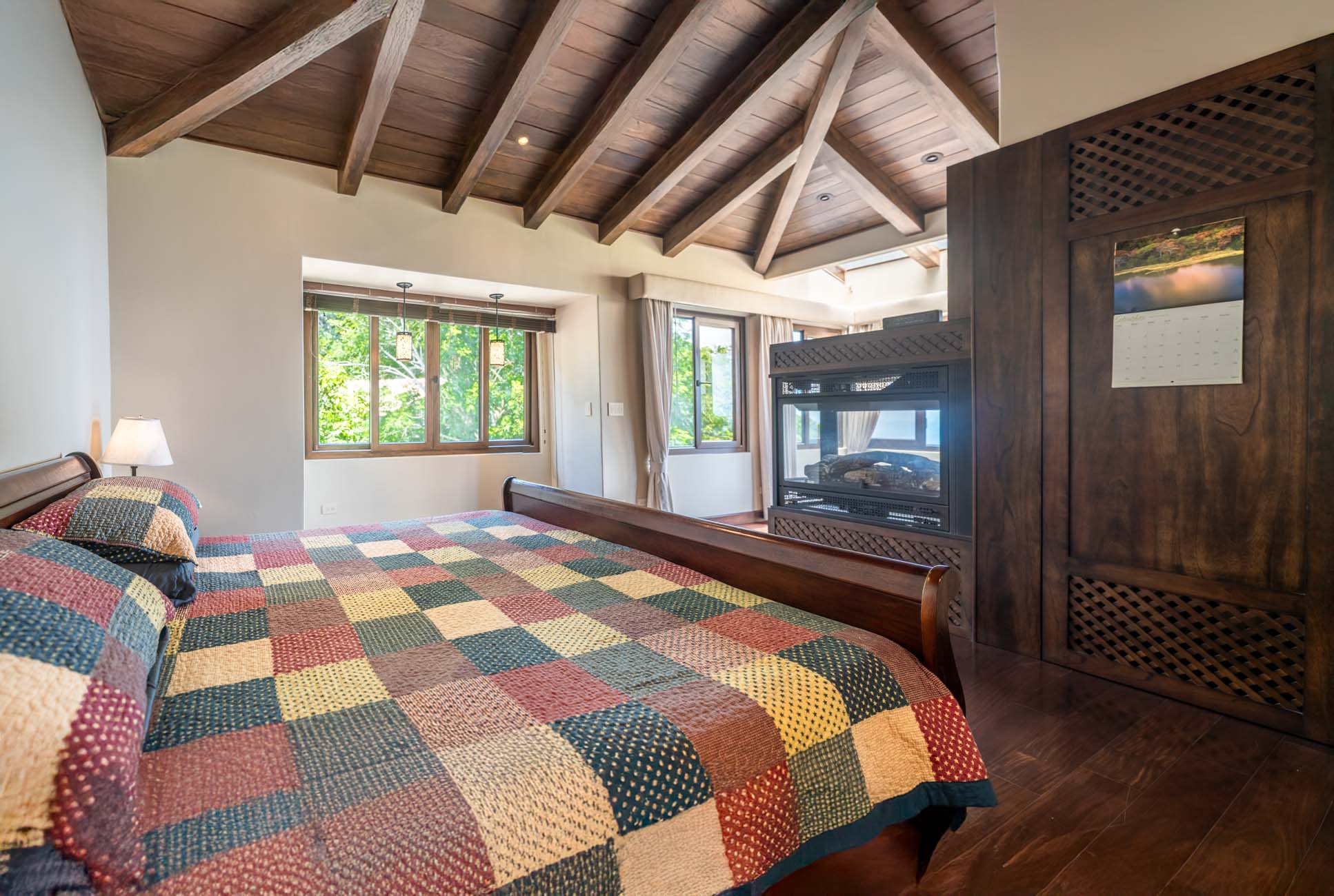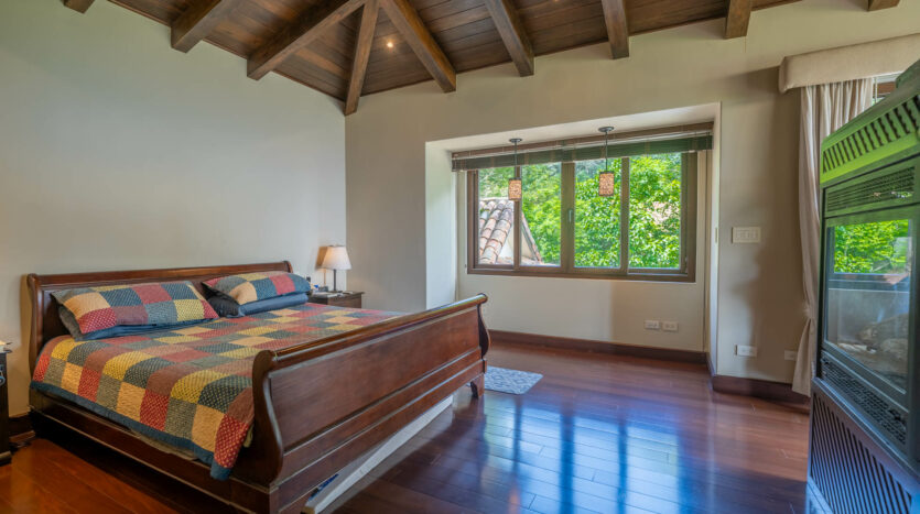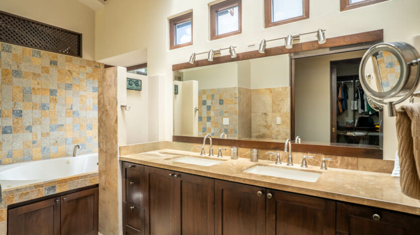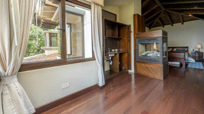 Master suite con pisos en madera, walk-in closet, área de lectura y baño en mármol con jacuzzi, ducha independiente y detalles de lujo como desempañador de espejo y calentador de paños.