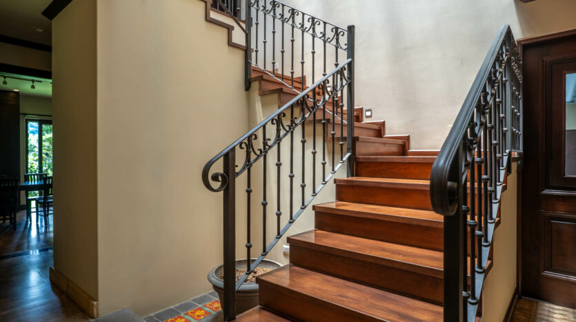 Escaleras de madera con espacio para instalar plataforma de elevador.