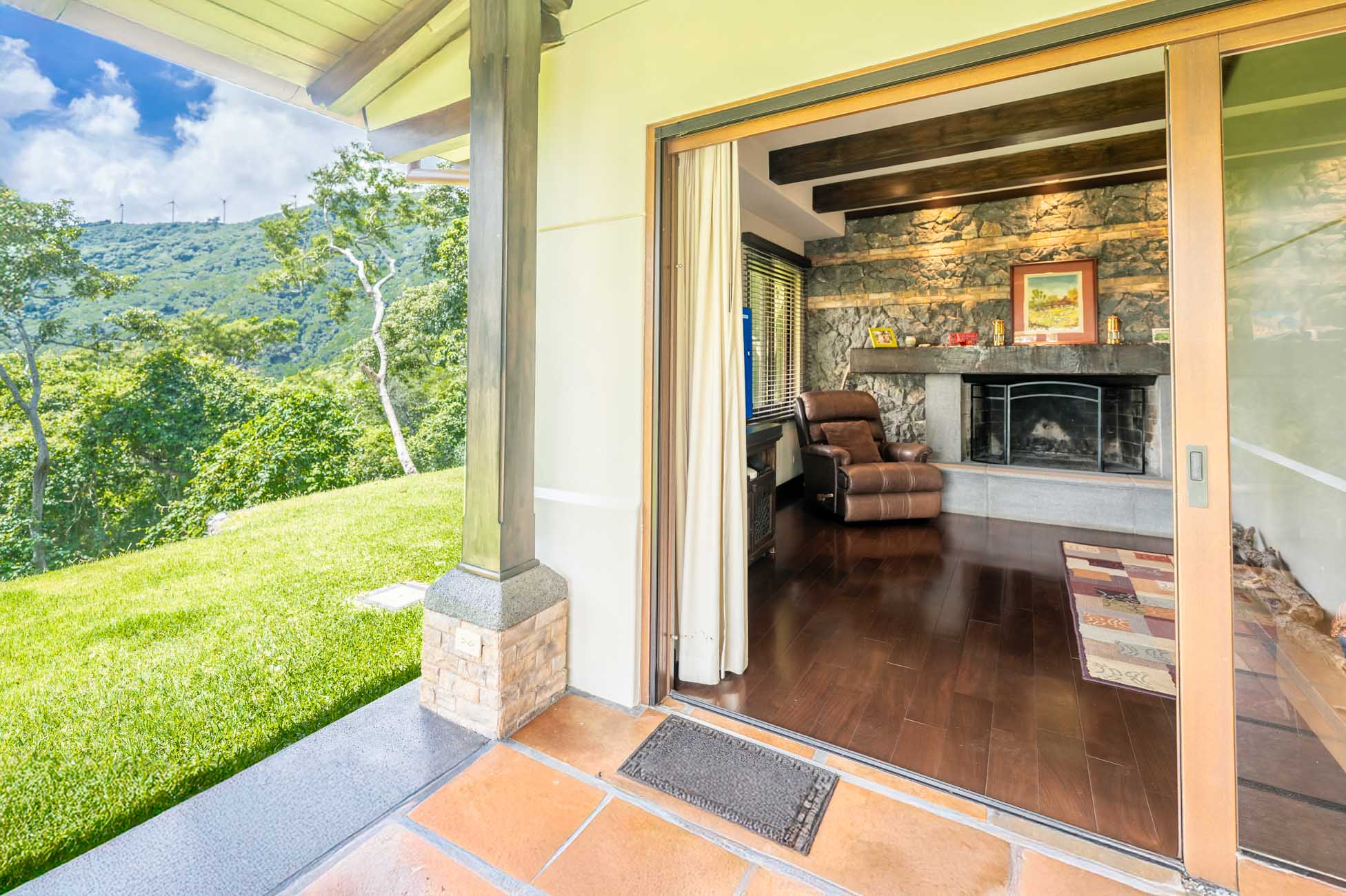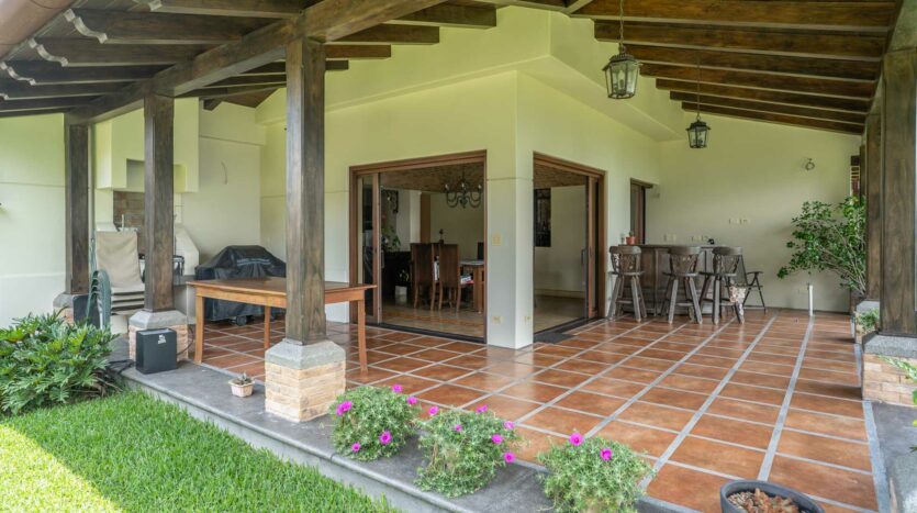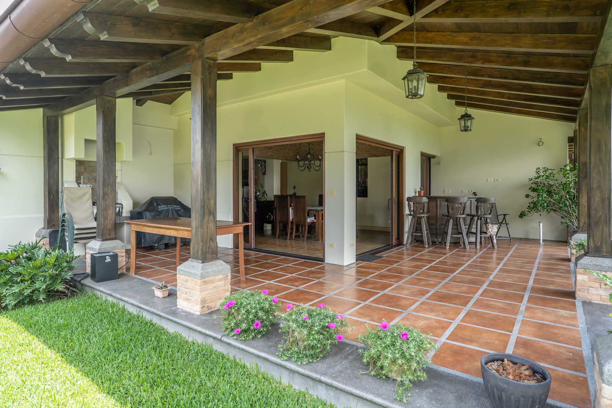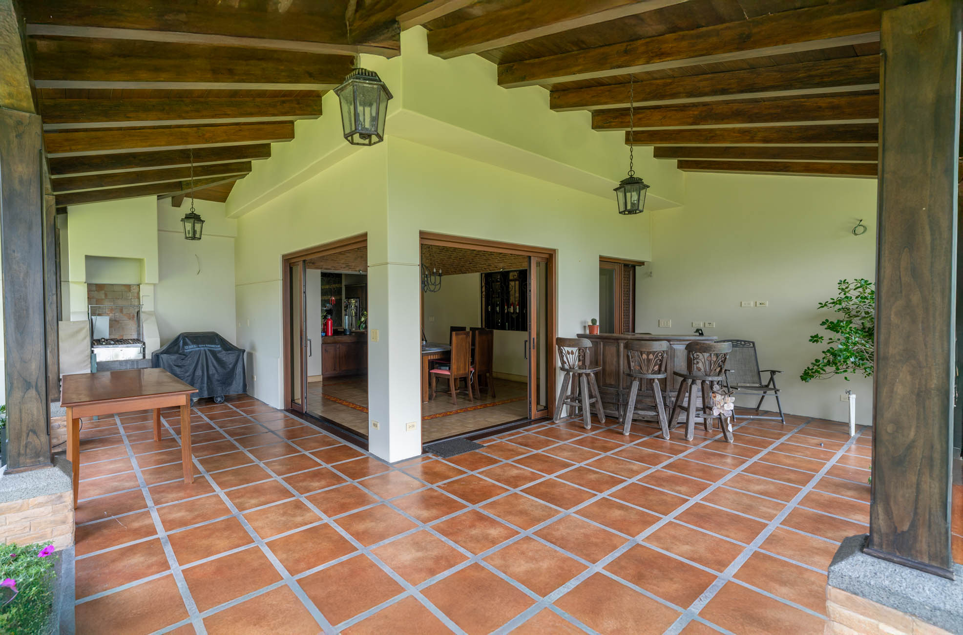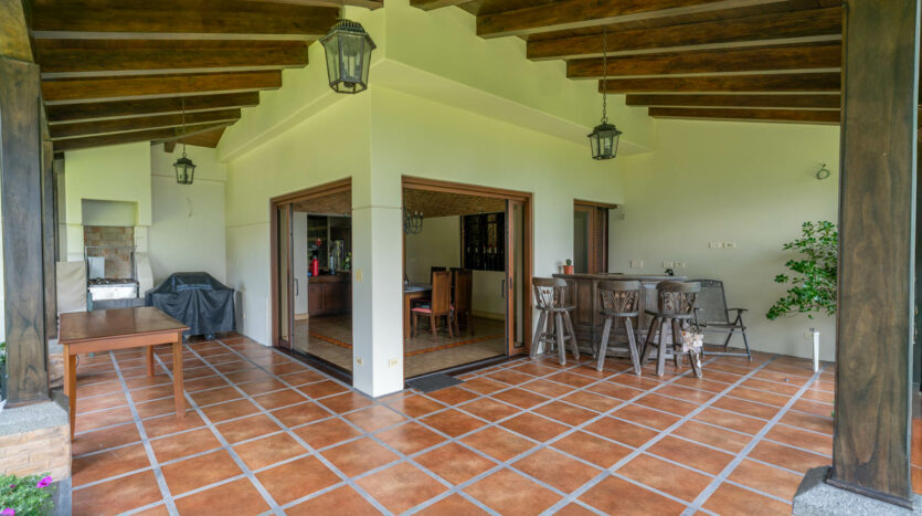 Terraza principal con previstas para pub, TV, música y mueble con pila.