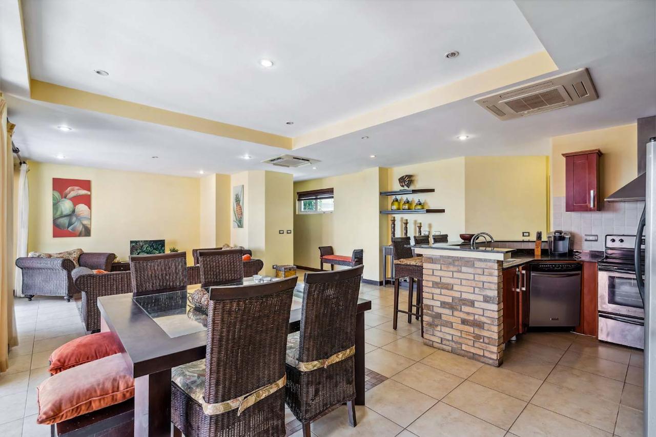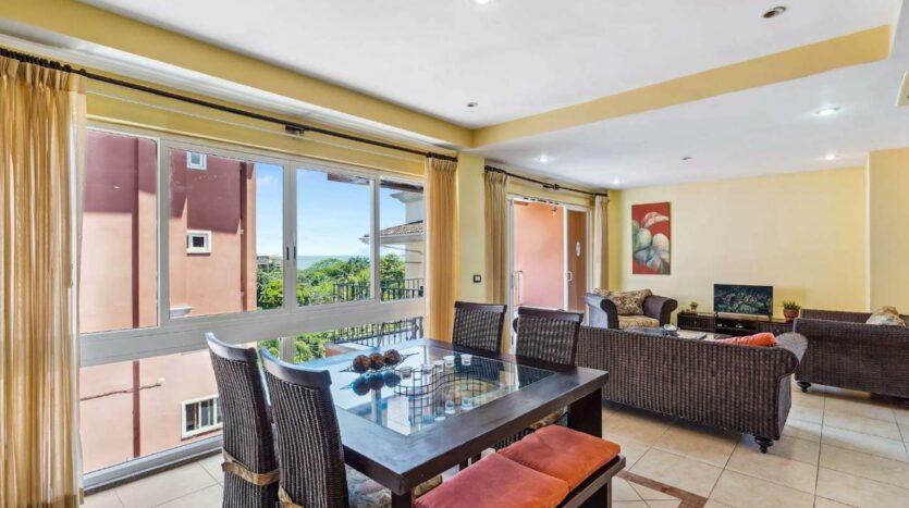 Step inside and be welcomed by a bright, open living space designed for relaxation and entertainment. The living area seamlessly flows onto a spacious terrace, where you can soak in serene ocean views and the golden sands of Langosta Beach. The natural light pouring in creates a warm, inviting ambiance, perfect for spending quality time with loved ones.