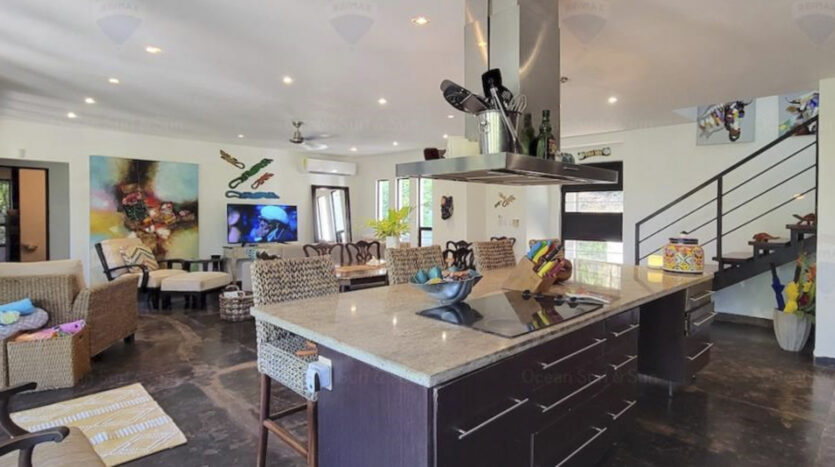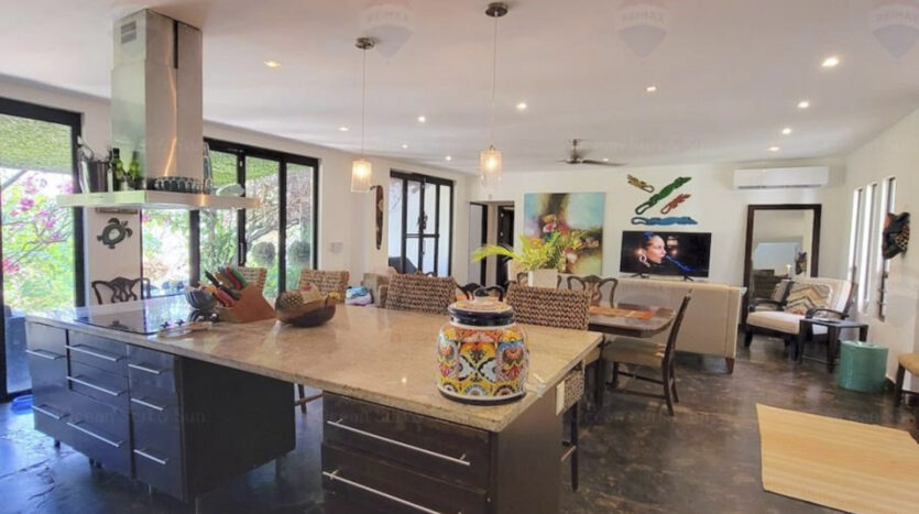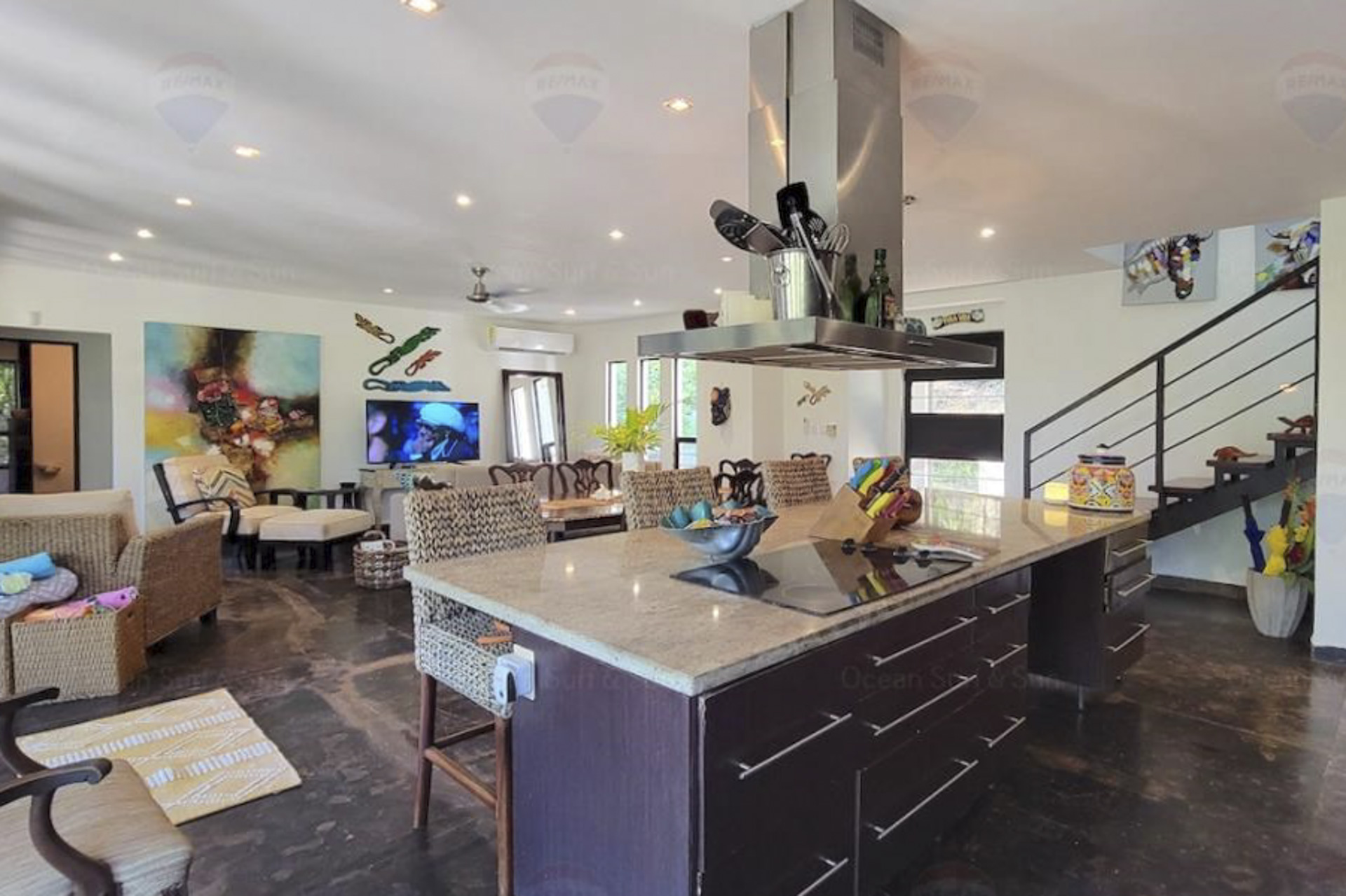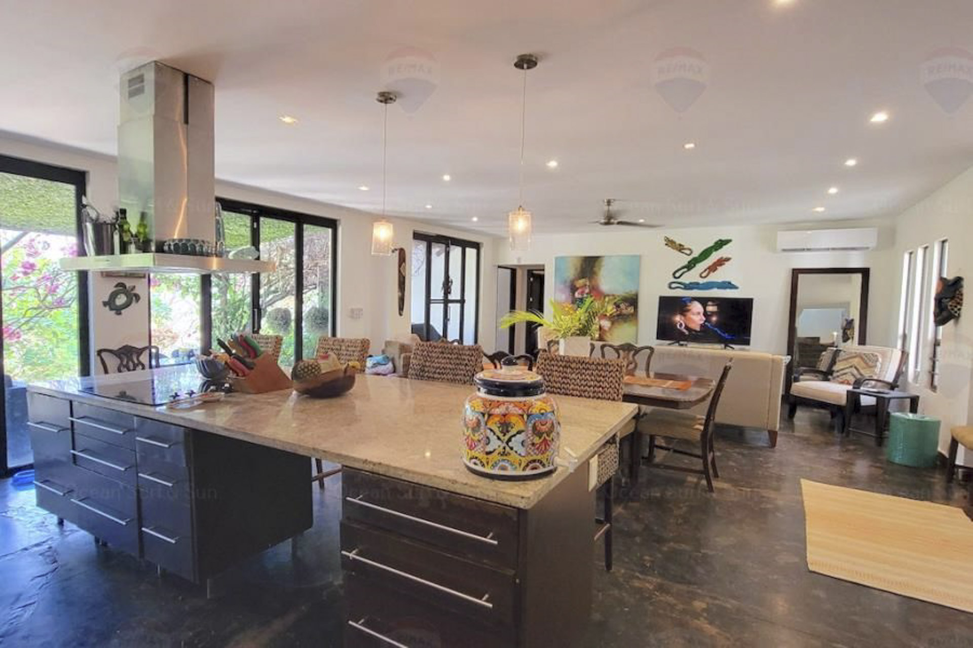 The property is landscaped with fruit trees and tropical plants and has canals for water drainage during the rainy season. It also features white pebble roads and pathways and solar lighting throughout. The main house has 3 large outdoor patios, 5 split AC units, and a fully stocked stainless steel kitchen with granite island, pantry, cooktop, dishwasher, double fridge, microwave, and oven. The casita has a large patio with living and dining areas and a grill, 2 AC split units, a washer-dryer, and a fully stocked stainless steel kitchen.