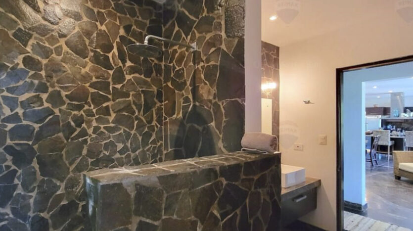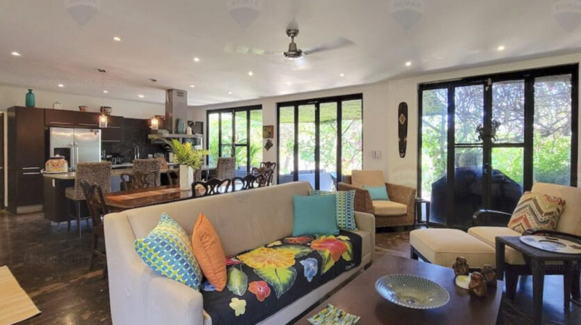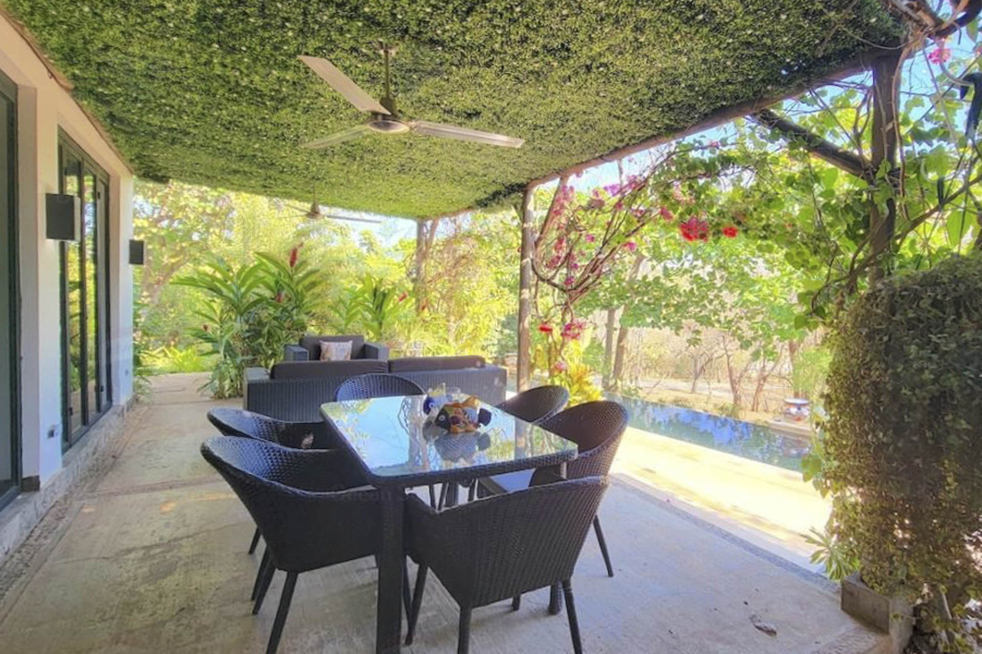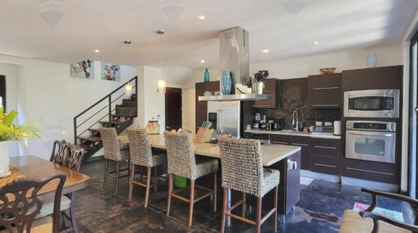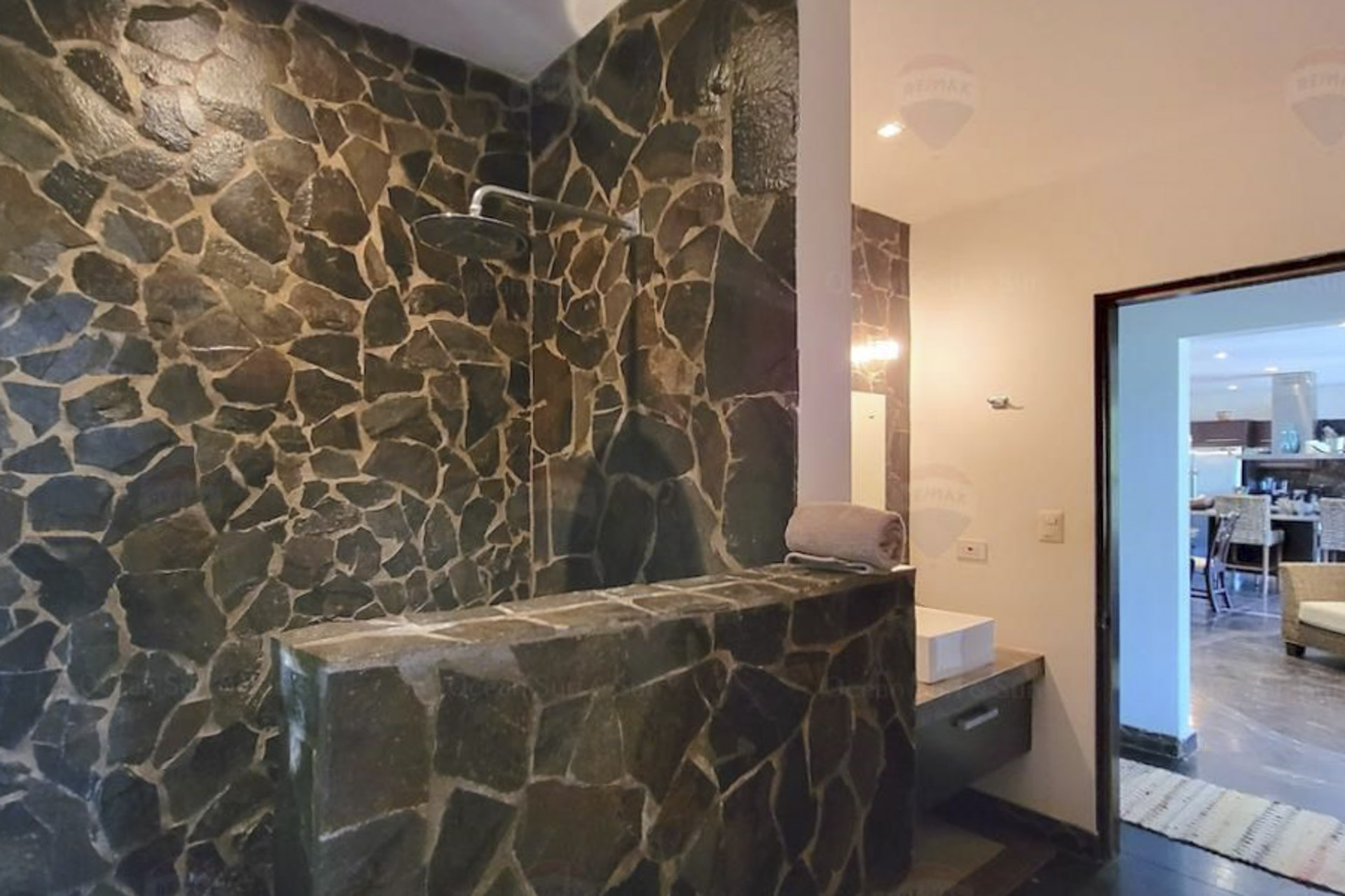 The property is landscaped with fruit trees and tropical plants and has canals for water drainage during the rainy season. It also features white pebble roads and pathways and solar lighting throughout. The main house has 3 large outdoor patios, 5 split AC units, and a fully stocked stainless steel kitchen with granite island, pantry, cooktop, dishwasher, double fridge, microwave, and oven. The casita has a large patio with living and dining areas and a grill, 2 AC split units, a washer-dryer, and a fully stocked stainless steel kitchen.