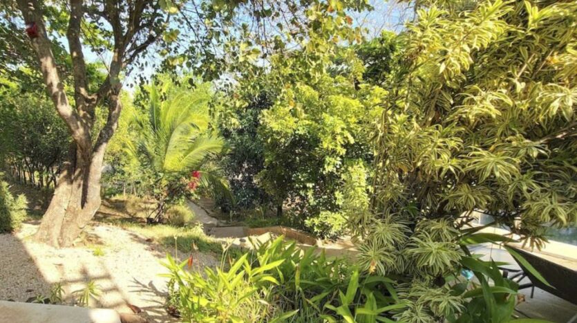 La propiedad está rodeada de árboles frutales y plantas tropicales, y tiene canales para el drenaje del agua durante la temporada de lluvias. También cuenta con caminos de guijarros blancos, iluminación solar y amplios patios exteriores. La casa principal tiene 3 grandes patios exteriores, 5 unidades de aire acondicionado y una cocina completamente equipada de acero inoxidable con una isla de granito, despensa, vitrocerámica, lavaplatos, nevera doble, microondas y horno. La casita tiene un gran patio con áreas de estar y comedor y una parrilla, 2 unidades de aire acondicionado, una lavadora-secadora y una cocina completamente equipada de acero inoxidable.