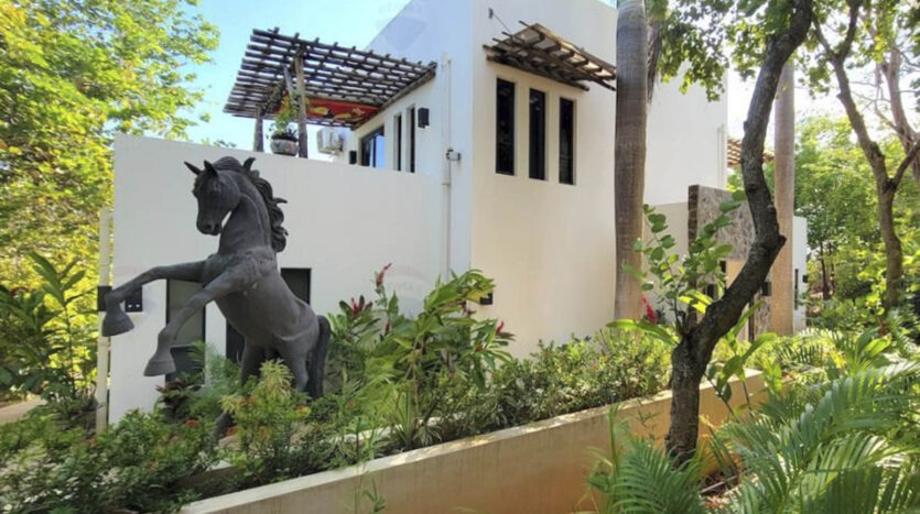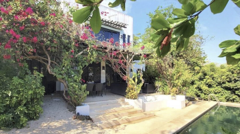 Welcome to Villa Blanca Estate, an exceptional property that offers a unique opportunity to own a gated, 1.25-acre lush tropical compound just 10 minutes from Tamarindo. This stunning estate boasts a spacious 3-bedroom/3-bathroom main house, a 1-bedroom/1-bathroom casita, and an infinity pool surrounded by endless gardens. There’s plenty of room for more homes or a business, making this a perfect opportunity for those looking to invest in a hotel, eco-lodge, restaurant, or yoga retreat.