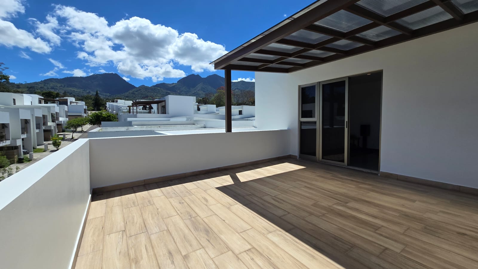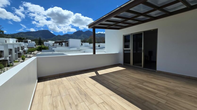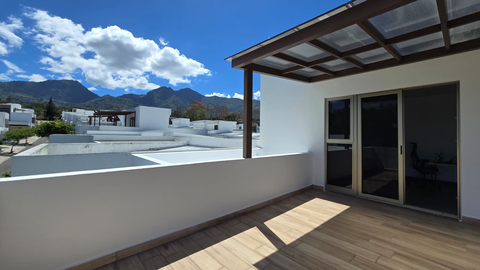 En el segundo nivel una espaciosa sala de tv u oficina con la iluminación natural y ventilación que le permitirán realizar su trabajo con más relajación. 2 habitaciones secundarias que comparten un baño completo y un cuarto principal con Walk-in-closet y su propio baño, con una amplia terraza exterior en el tercer nivel.