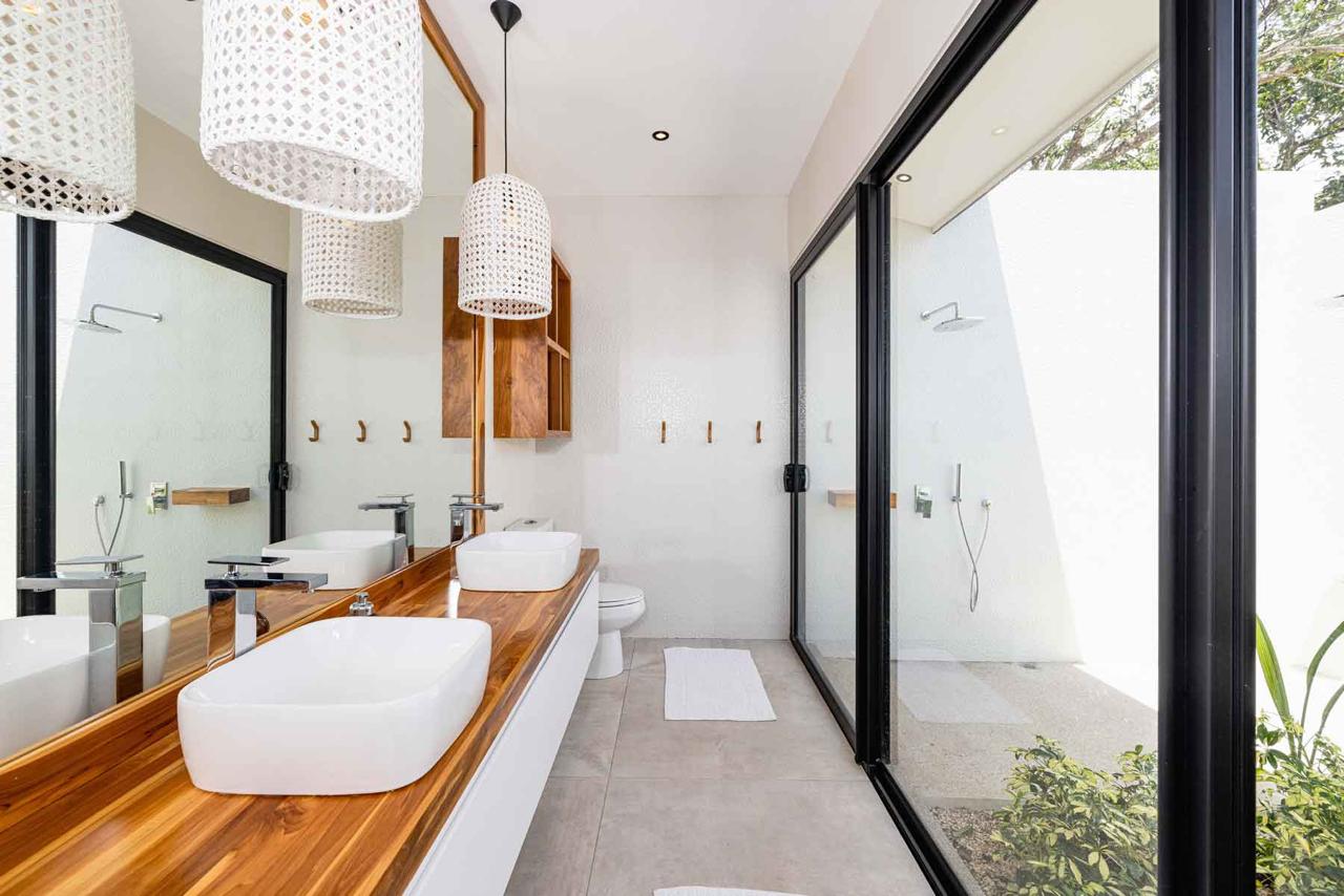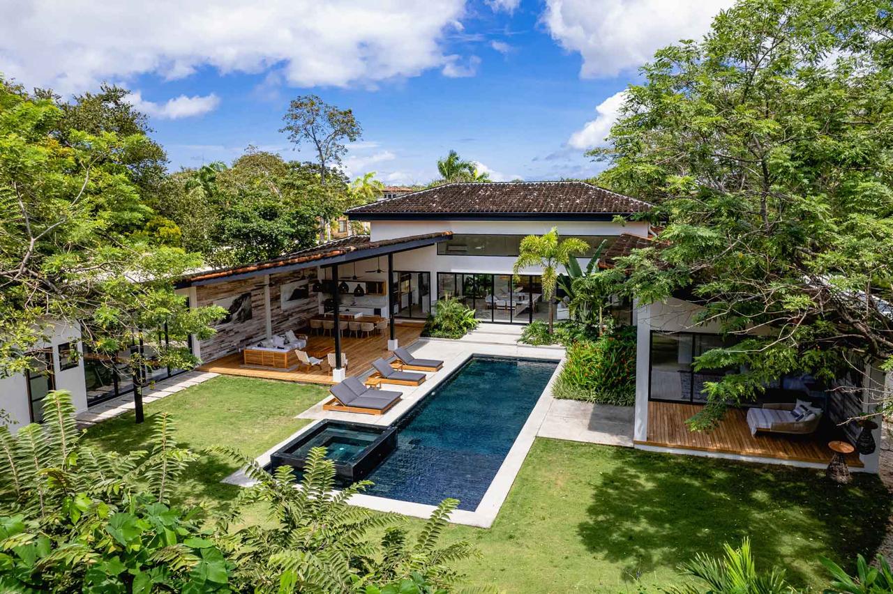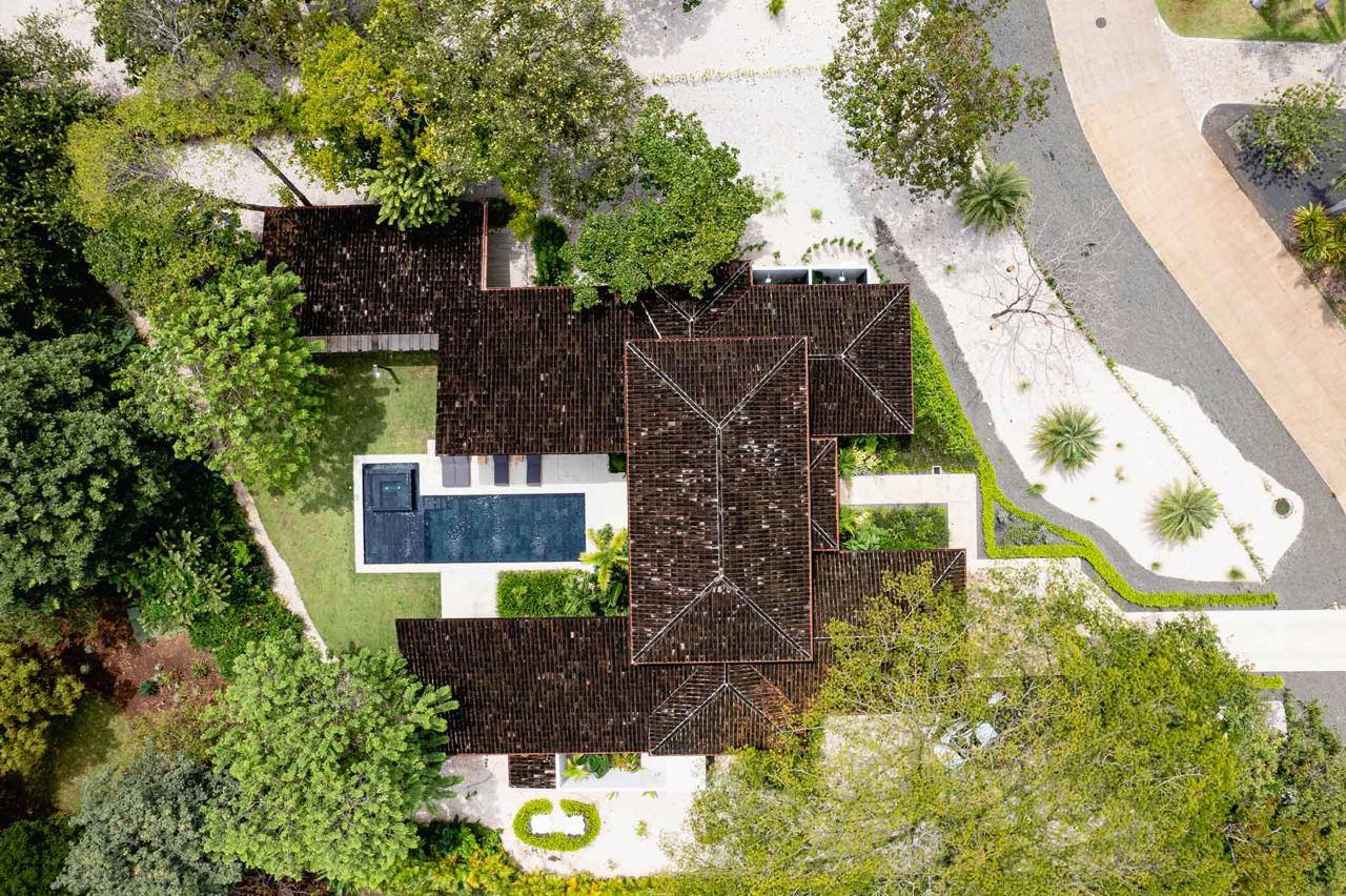 Construida en un amplio terreno de más de 2,600 m², esta propiedad ofrece casi 500 m² de diseño impecable y acabados que evocan la calidez del trópico: techos de teca de piso a cielo, jardines vibrantes, palmeras que danzan con el viento, y una atmósfera de pura privacidad.