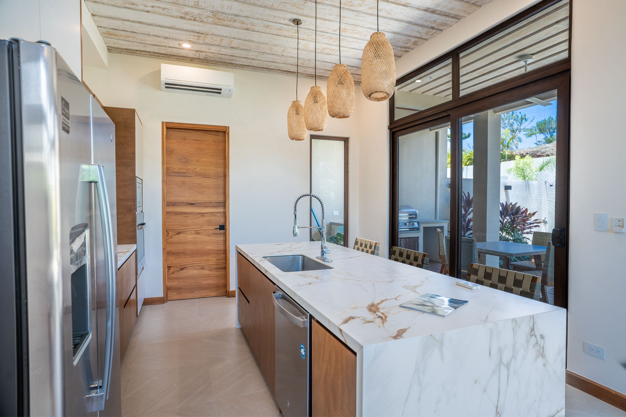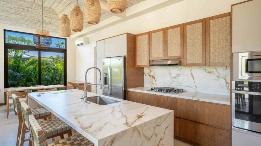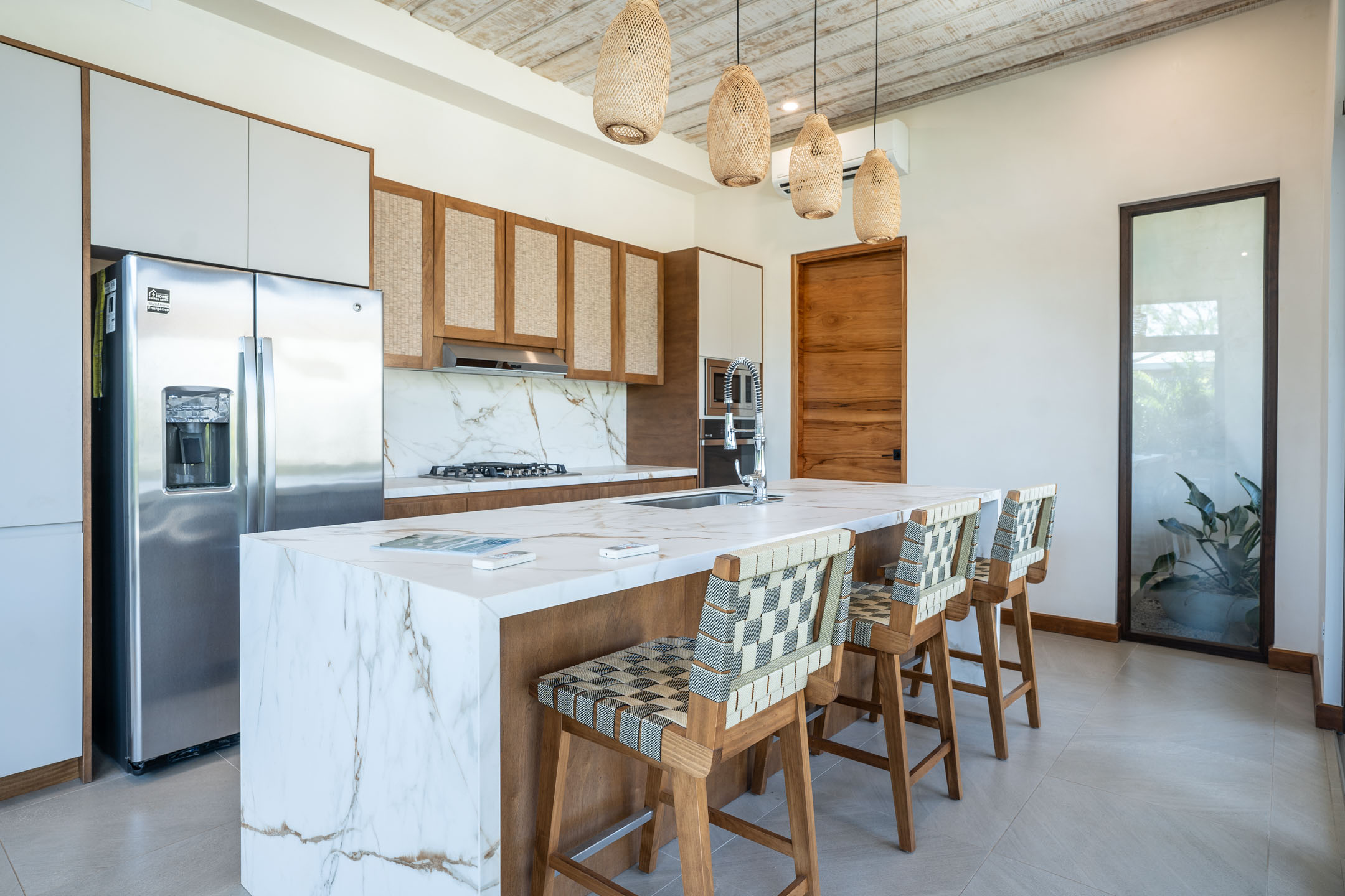 Cada detalle de nuestra casa ha sido meticulosamente pensado para optimizar la belleza de la vegetación exótica circundante. Con tres espaciosos dormitorios y baños, equipados con materiales de la más alta calidad y elegantes suelos de porcelana, el confort y la elegancia se encuentran en cada esquina.