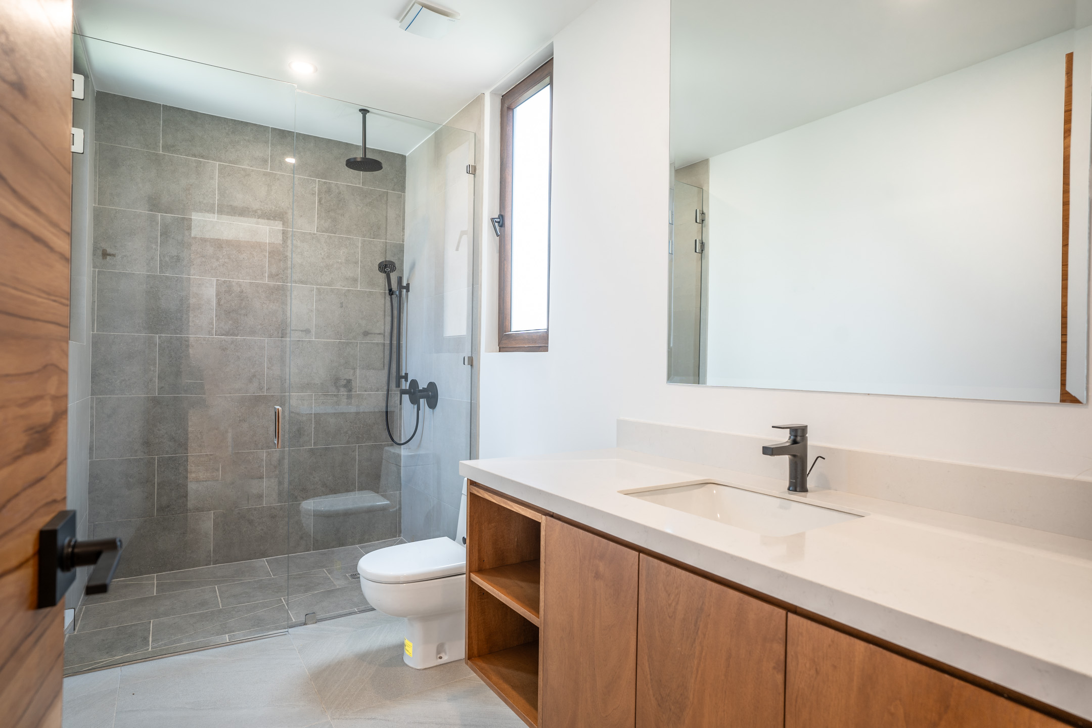 - Tres dormitorios espaciosos, cada uno con su baño privado, asegurando privacidad y comodidad.