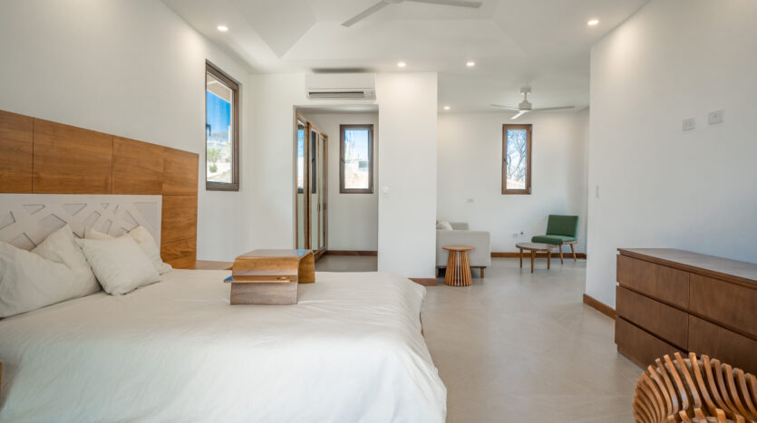 - Los otros dos dormitorios se abren a balcones privados, uno con vistas a la impresionante playa Langosta.