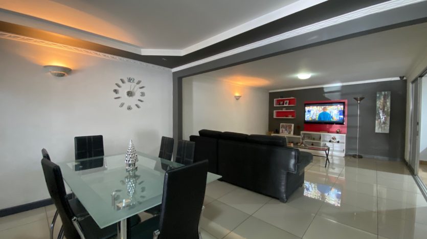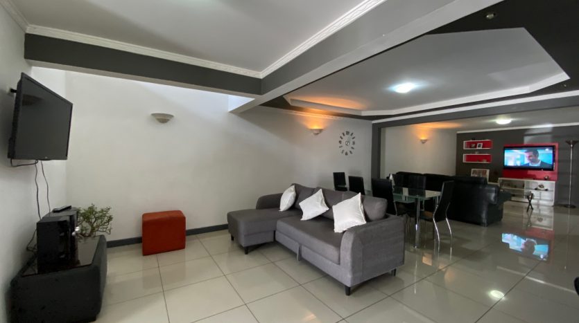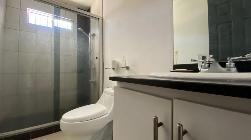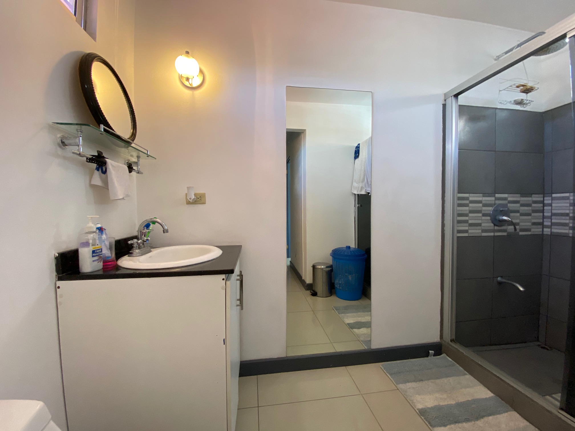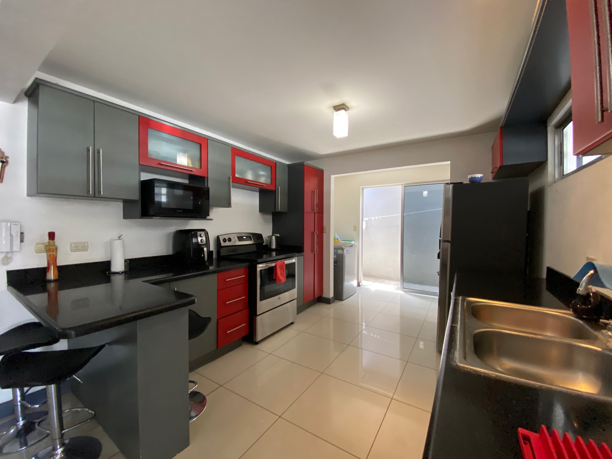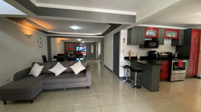 - Apartamento con espacio abierto de sala, comedor, cocina y habitación con baño completo.