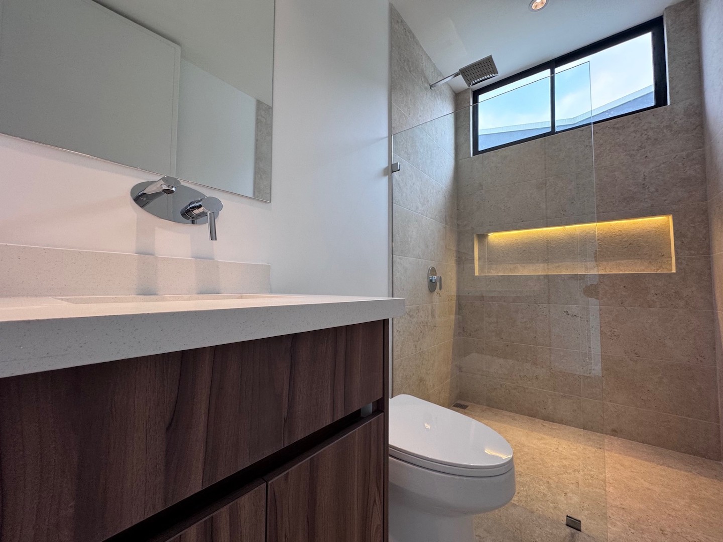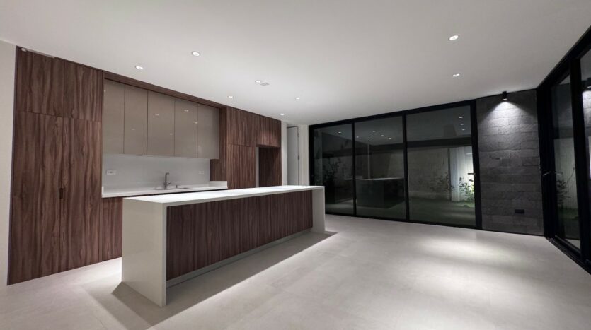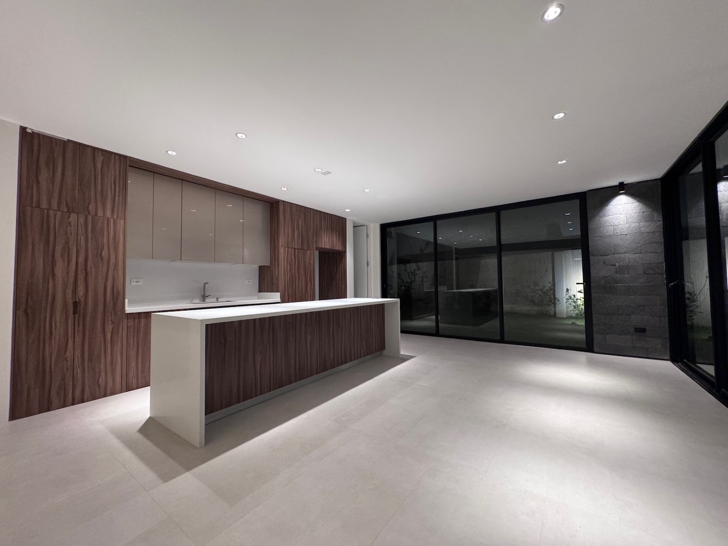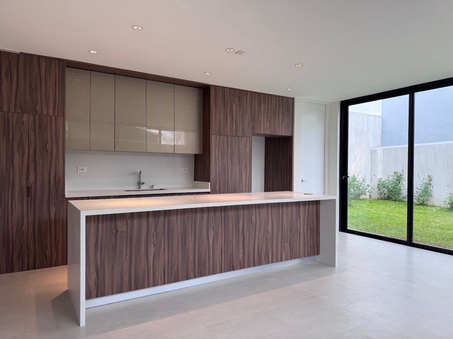 Esta casa cuenta con 4 habitaciones, 2,5 baños, bodega, sala tv, cocina con diseño europeo, con isla de 2,40 metros de longitud, luces indirectas, luces de cortesía en gradas y baños, prevista para auto eléctrico.
