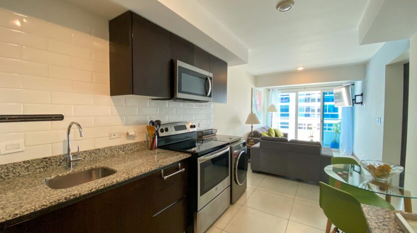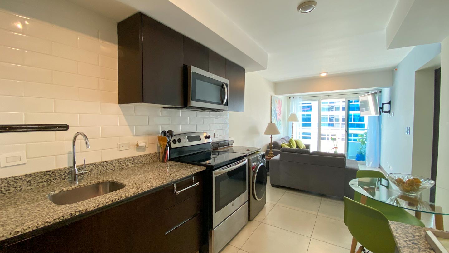 - Cocina (incluye microondas con extractor, cocina, refrigeradora y lavaseca)