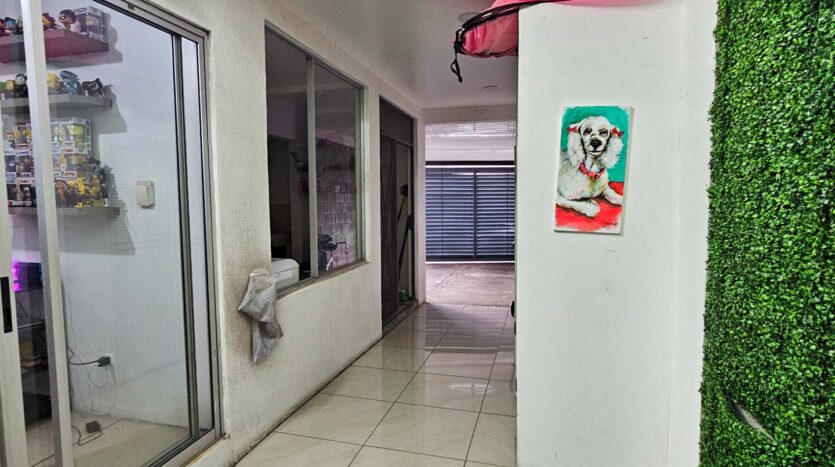 Casa esquinera, en el primer nivel posee parqueo para 2 carros, sala, comedor, cocina, 2 habitaciones, 2 baños completos, bodega, 2 entradas a la casa.