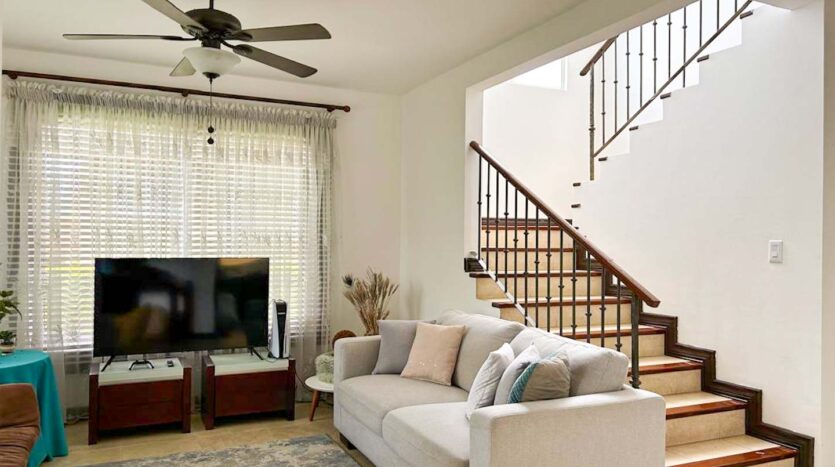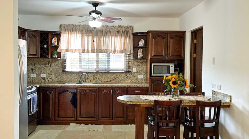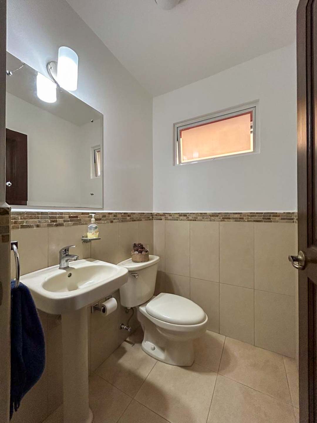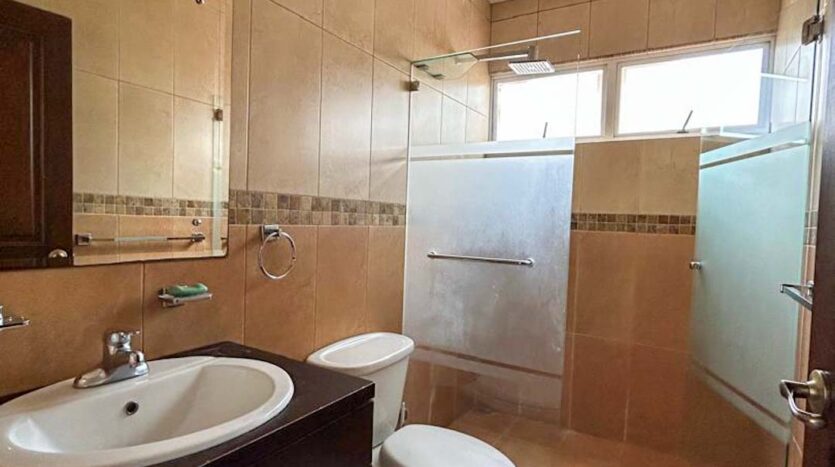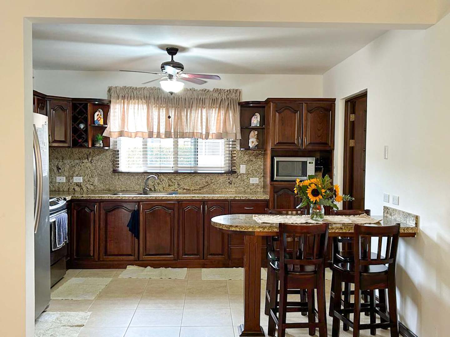 Casa con espacios muy  amplios y esquinera, parqueo para 2 autos, sala y comedor en un espacio abierto, cocina con sobre de granito y muebles de madera, cuarto de lavado, cuarto de servicio con baño completo, medio baño para visitas, 2 habitaciones secundarias con su closet que comparten un baño completo, 1 habitación principal con baño privado y walk in closet.