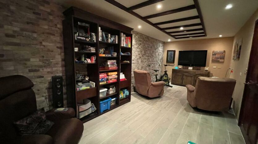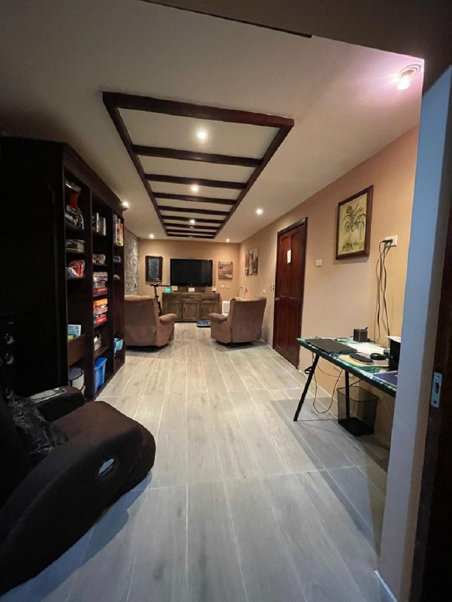 Las áreas sociales de esta propiedad son impresionantes. Con amplios espacios abiertos, perfectos para disfrutar en familia o para recibir invitados, esta casa cuenta con una amplia cocina con acabados de primera calidad, una verdadera joya para aquellos amantes de la gastronomía. Cochera techada para 3 vehículos y capacidad para estacionar entre 8 a 10 autos. Además, la casa cuenta con un ático para bodega en un tercer nivel y vigas de almendro, detalles que la hacen única y exclusiva. En el primer nivel cuenta con área de servicio con habitación y baño, además de una gran habitación que ahora mismo es una cómoda sala de TV y amplísima y comodisima área de pilas.