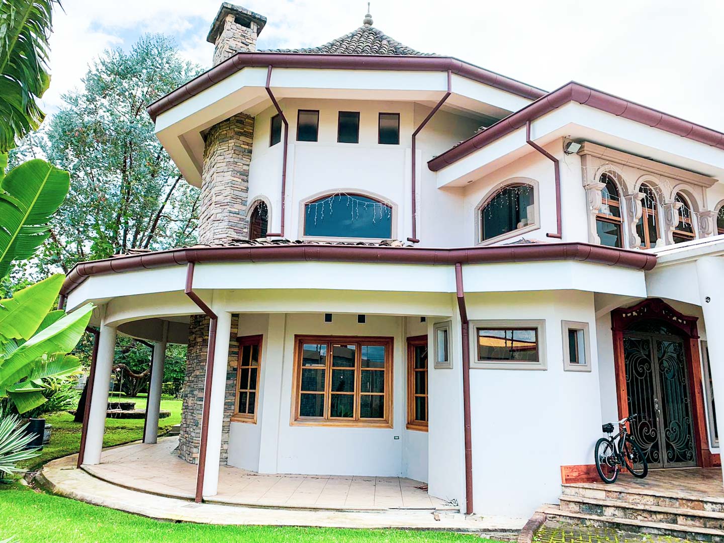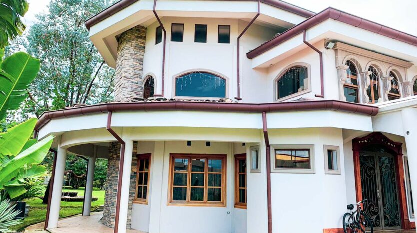 La casa cuenta con materiales de construcción y acabados de primera:  pisos de mármol, enchapados de traventino, maderas semipreciosas de Cedro y Cristóbal. Cuenta con 5 habitaciones muy amplias, además de un Ático que se puede utilizar como cuarto de estudio, además al pasar el lobby se encuentra una amplia sala con chimenea y gradas que lo llevan a una Cava en madera importada fina ideal para las actividades entre amigos. La cocina es muy amplia y moderna con una zona de terraza muy amplia y un espacio de mesa para desayuno rodeada por el jardín trasero. Cuenta con área de comedor, amplia biblioteca y oficina. Cuarto de servicio con baño completo, cochera para 3 vehículos bajo techo y para un total 20 parqueos más. La casa en la segunda planta tiene unas preciosas vistas a las montañas del Zurquí y se encuentra a 20 min de San José.  Casa amigable con el ambiente, rodeada de ventanales amplios en toda la casa proporcionando luz natural a toda la casa. Es una verdadera joya que se presenta como una Oportunidad para vivir feliz en una maravillosa casa rodeada de jardines y con vistas panoramicas.