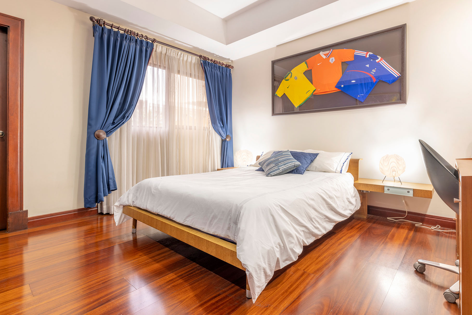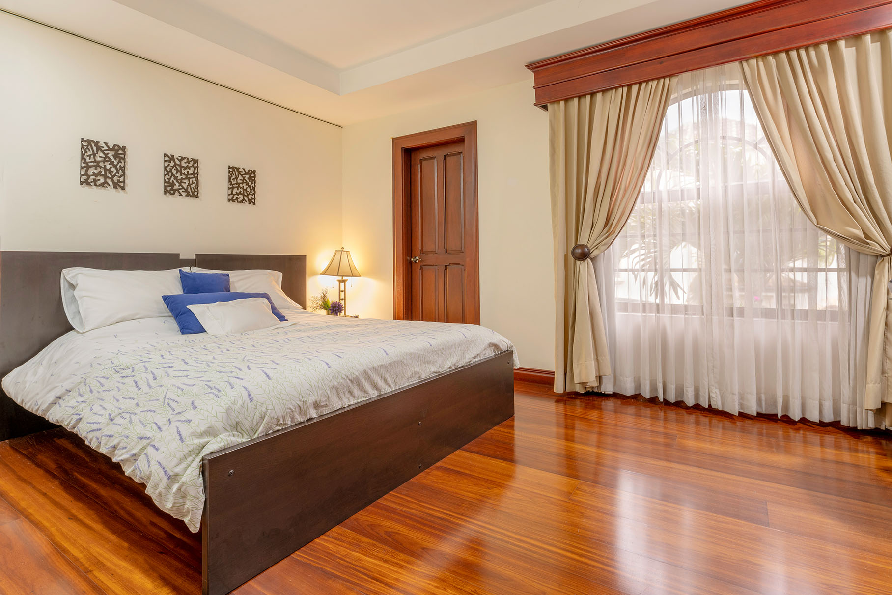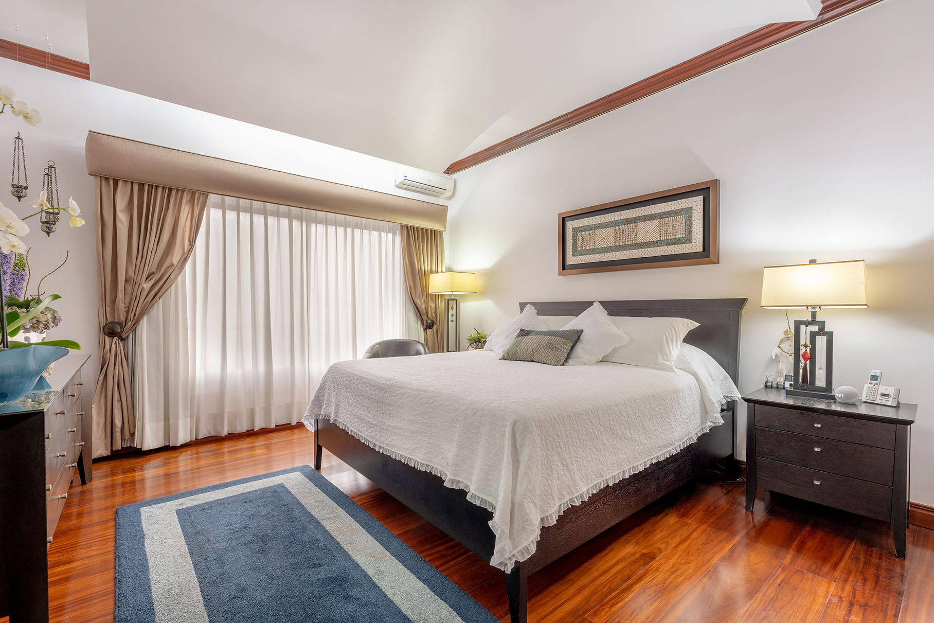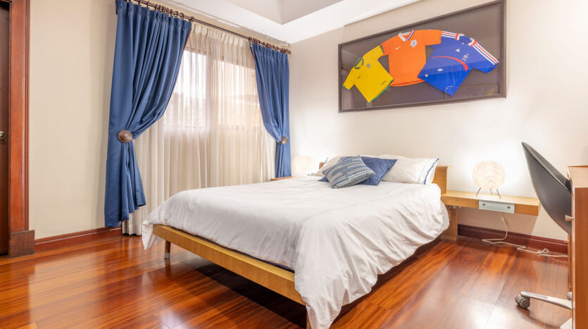 Dormitorio principal con aire acondicionado y walking closet. Baño con doble lavamanos, bidet, ducha y jacuzzi, Dormitorio secundario amplio, walking closet y baño interno, y los otros Dormitorios 3 y 4 también tienen walking closet compartiendo un baño amplio con lavamanos, ducha e inodoro separados y una amplia Sala de TV o multiuso
