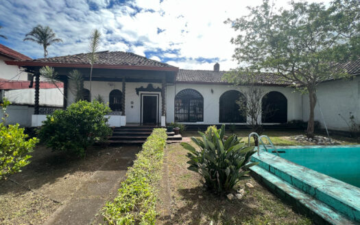 Se vende hermosa casa de una planta, en residencial, con amplio espacio de patio con zona verde, cochera para 6 veh