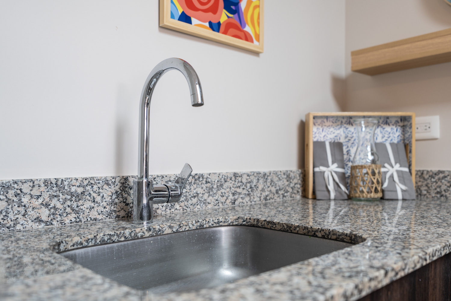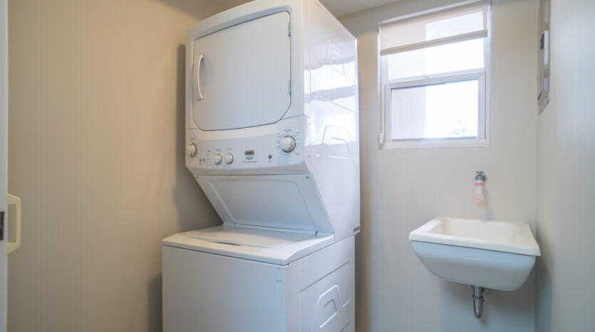 •Área de lavado independiente, con pila de fibra de vidrio y conexiones para lavadora/secadora