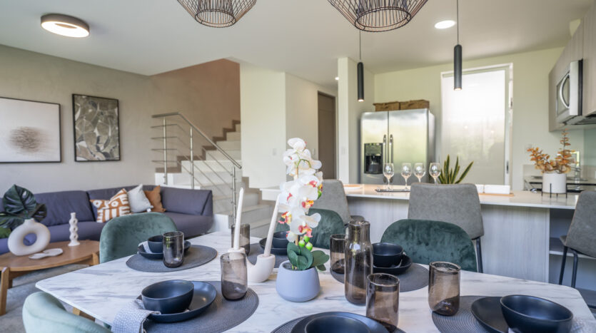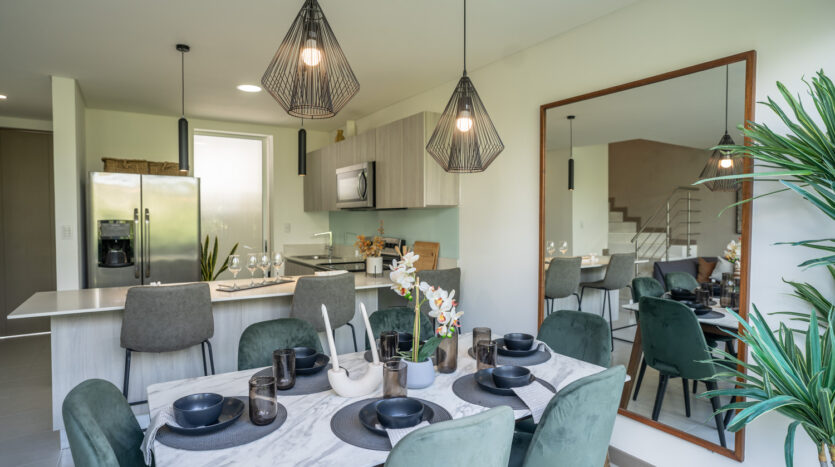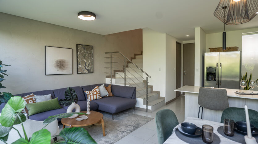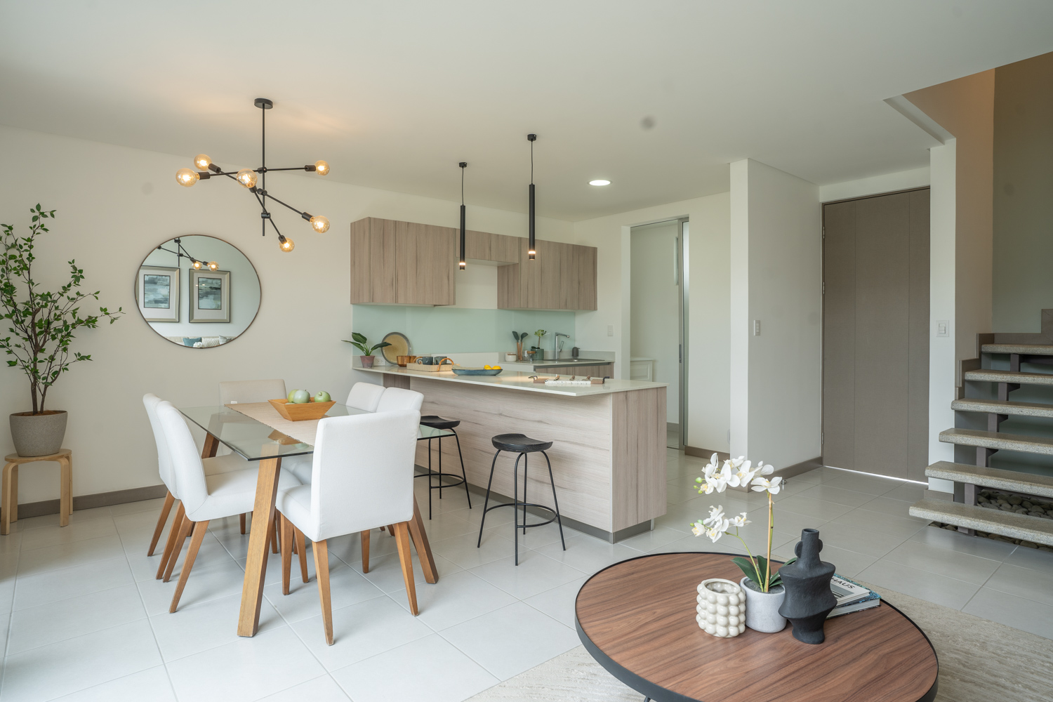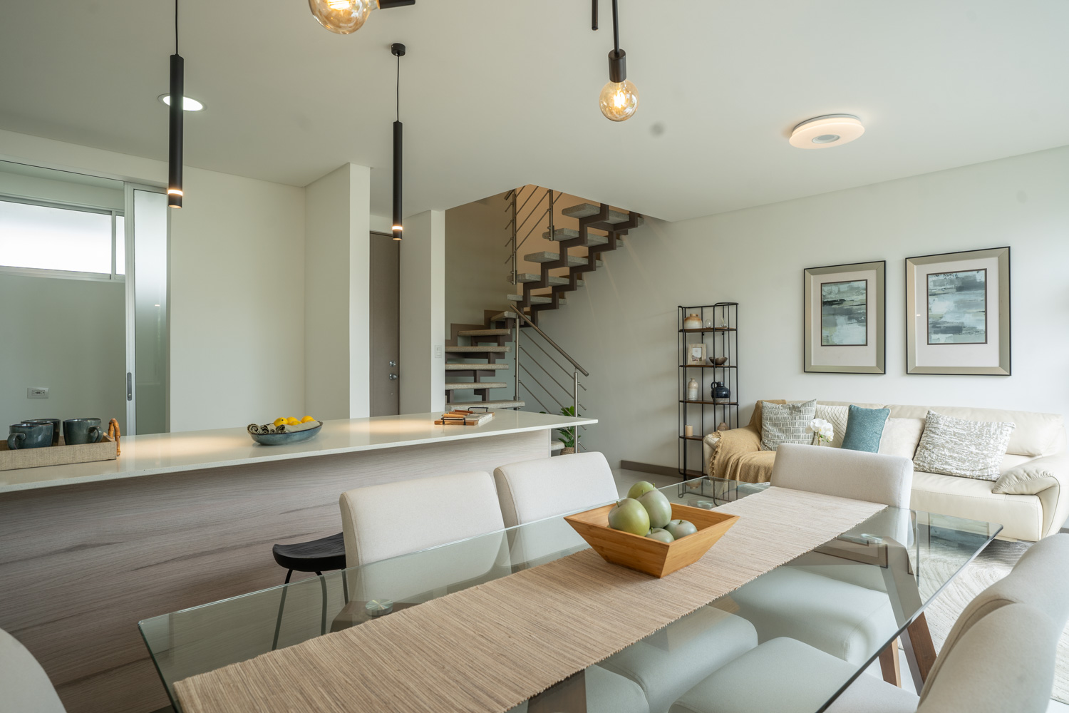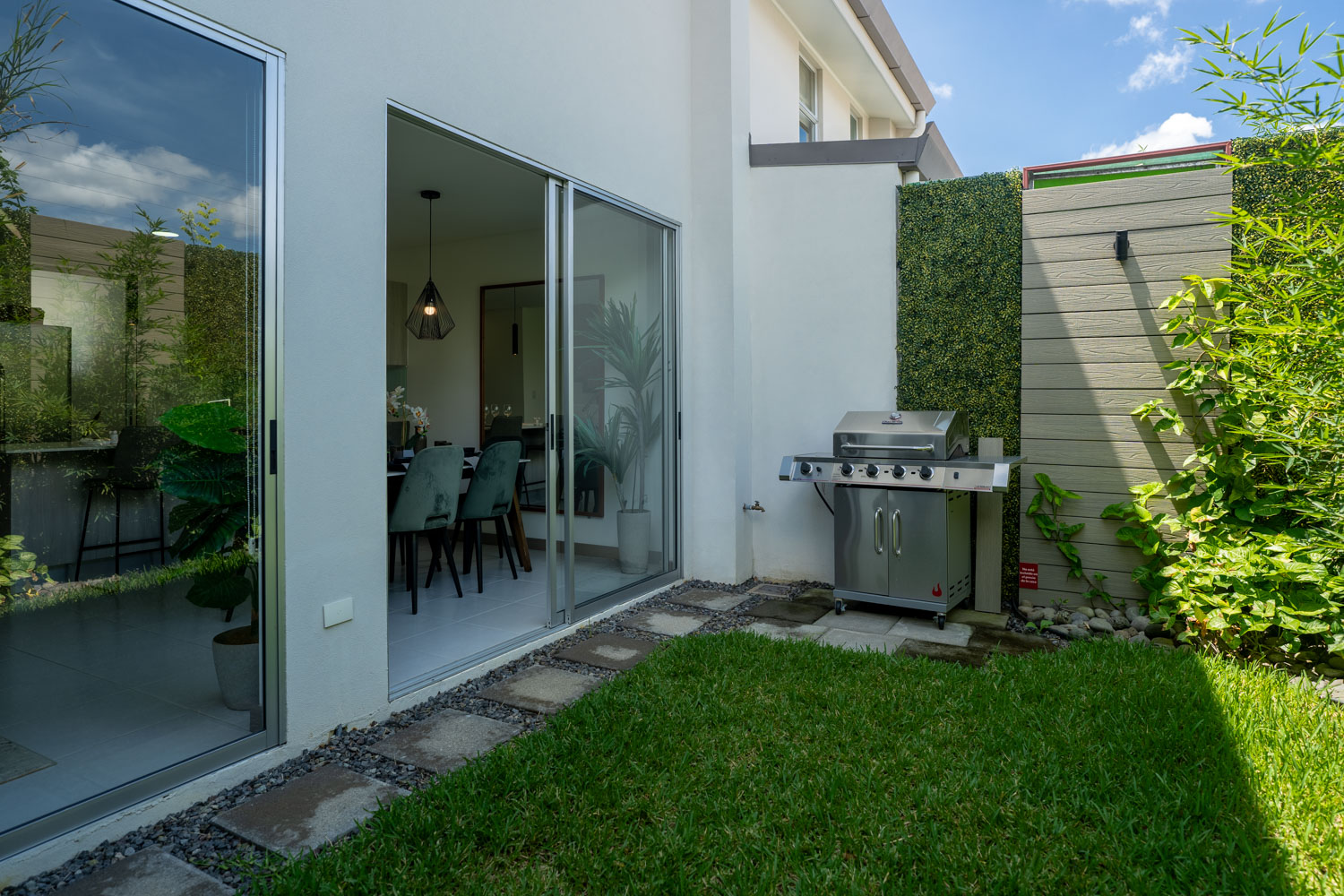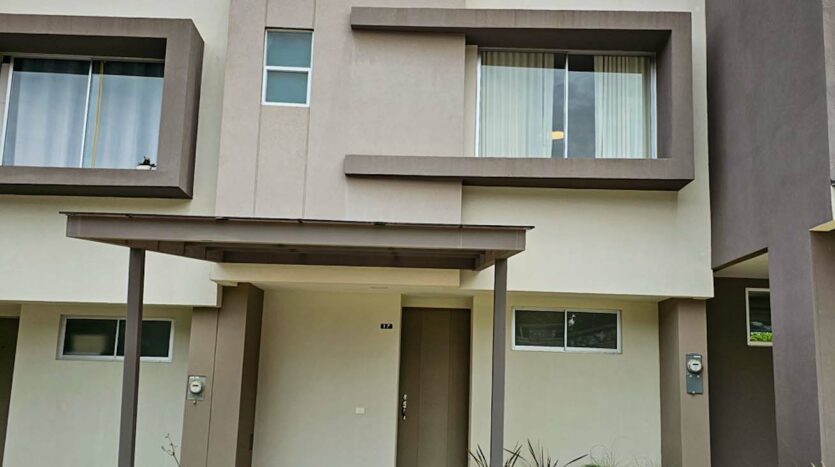 Posee parqueo para 2 carros, cocina, cuarto de lavado, sala-comedor en un espacio abierto, 1/2 baño de visitas, jardín trasero. En el segundo nivel   tiene una sala de TV al subir las gradas, 2 habitaciones secundarias que comparten 1 baño completo + 1 habitación principal con su baño privado.