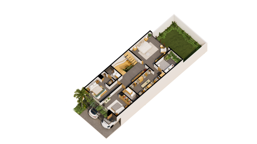 La residencia, con sus interiores meticulosamente diseñados, le ofrece múltiples opciones de distribución. Elija el diseño que mejor se adapte a sus gustos y necesidades. Pero no es solo la vivienda lo que le encantará: la Casa Club es un oasis de lujo con piscina, jacuzzi, gimnasio y extensas áreas verdes, ideales para su relajación y disfrute.